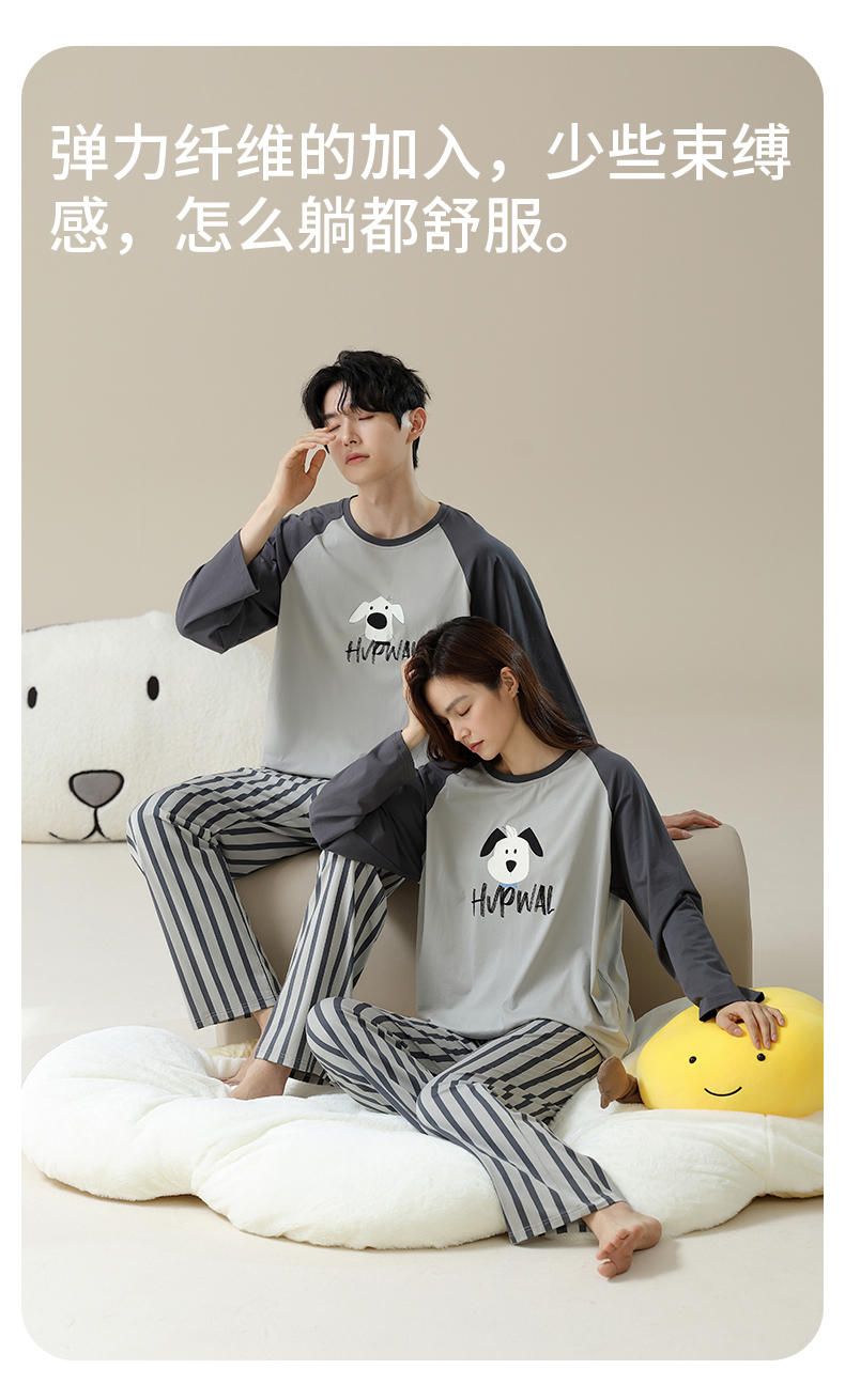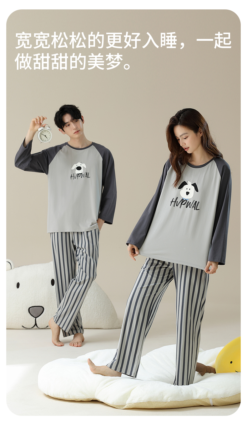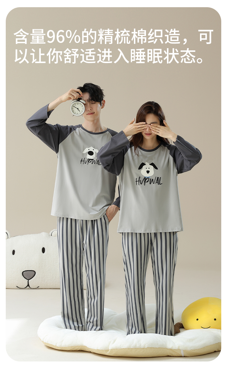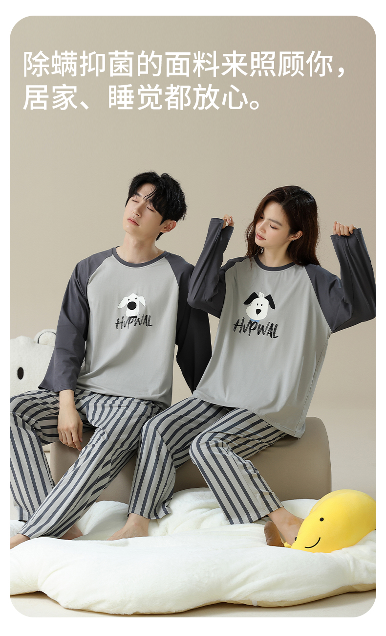 【抗菌新疆棉】自然醒「恋爱ing」情侣睡衣女春秋款纯棉男士长袖家居服JLM