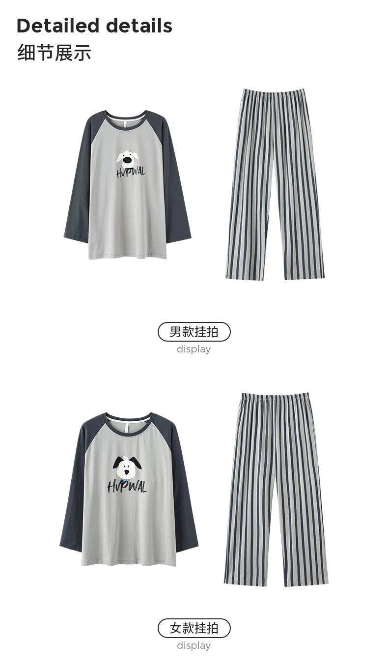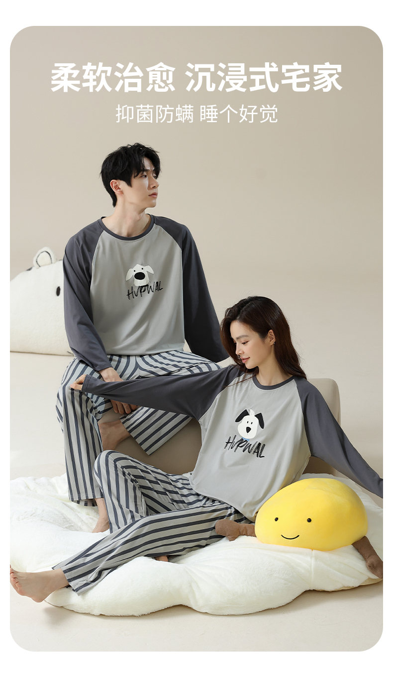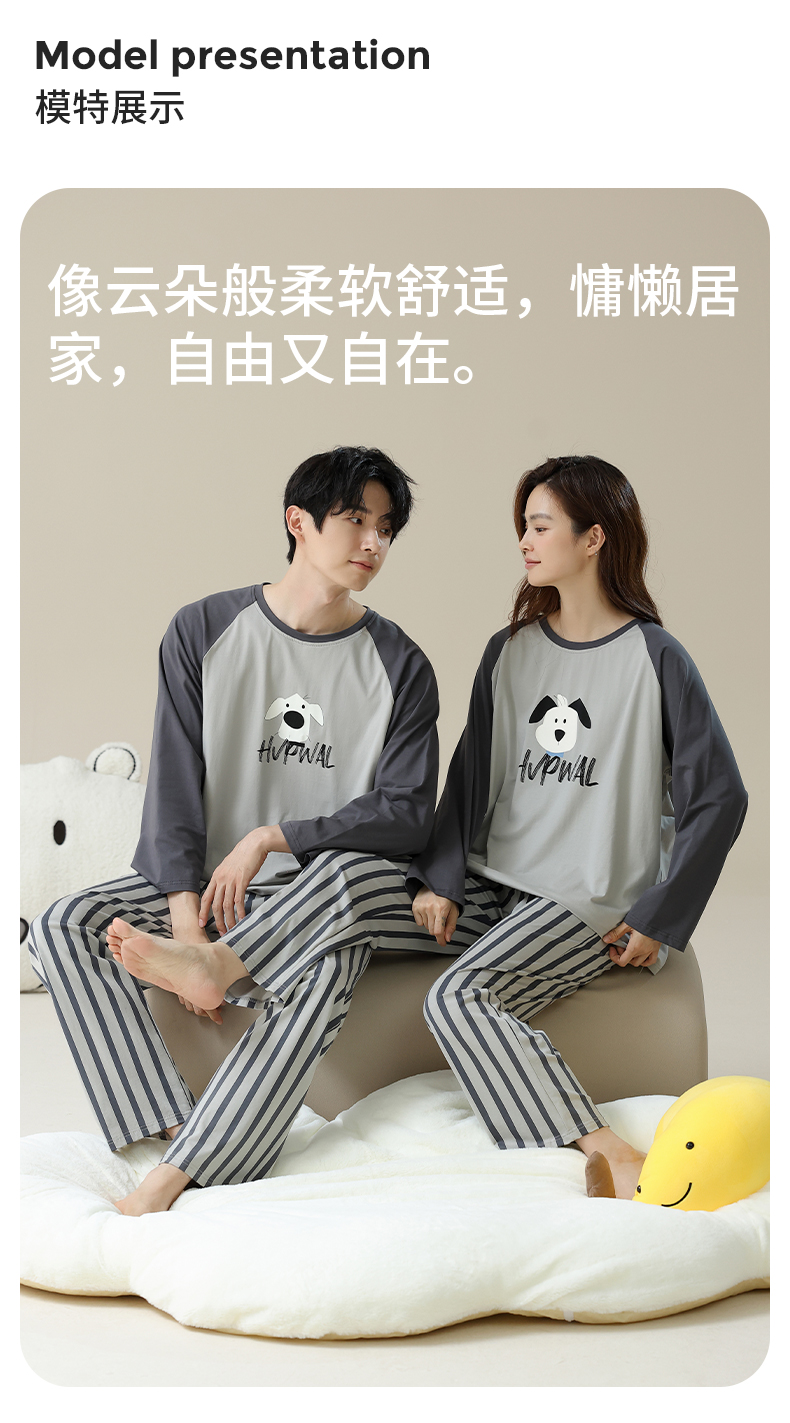 【抗菌新疆棉】自然醒「恋爱ing」情侣睡衣女春秋款纯棉男士长袖家居服JLM