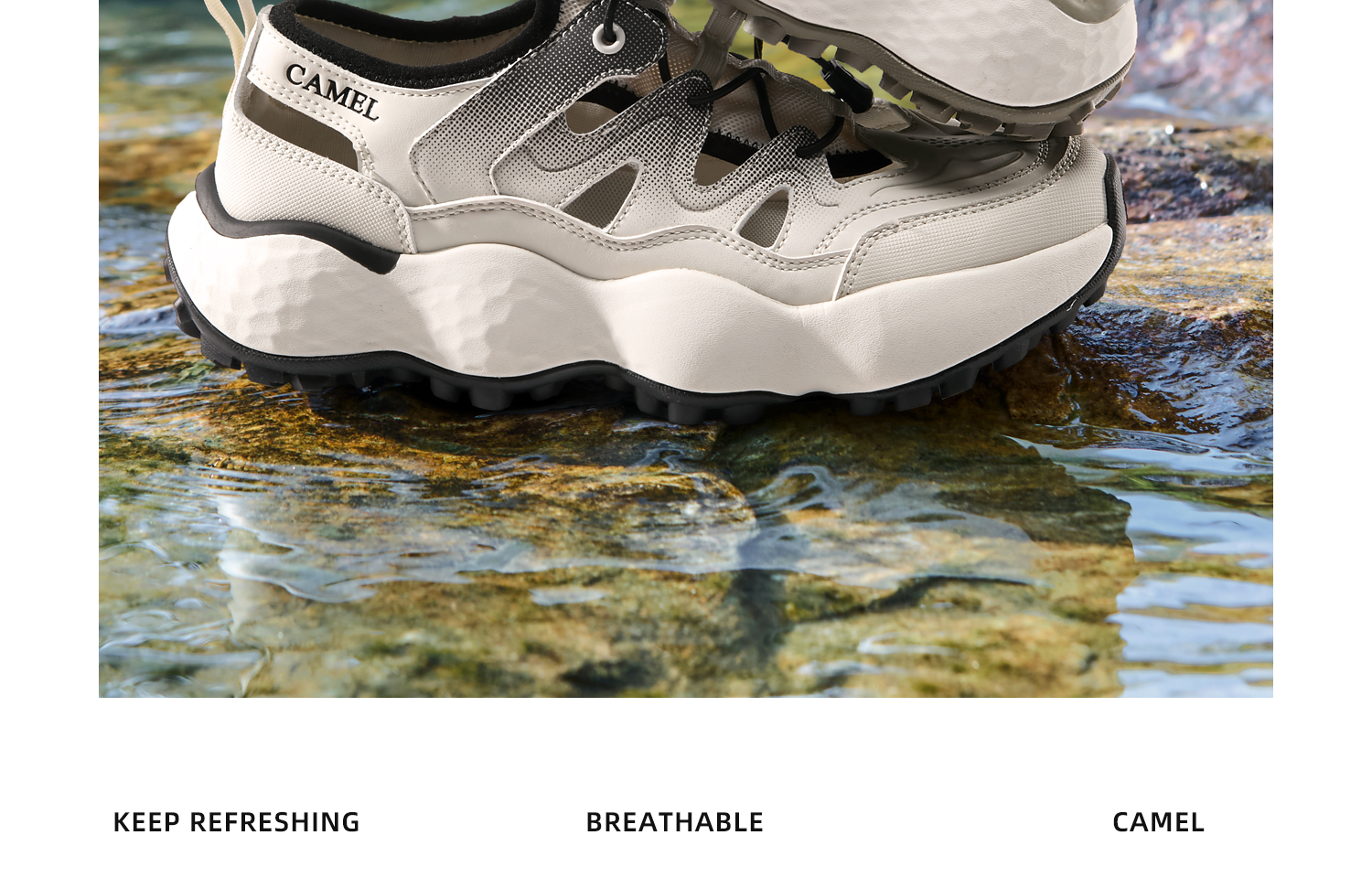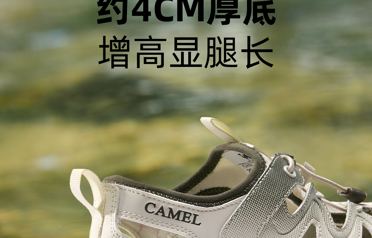 骆驼溯溪鞋男鞋2025夏季新款舒适透气软弹城市户外休闲花生凉鞋 G15M171003