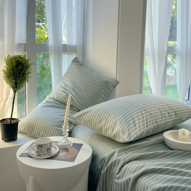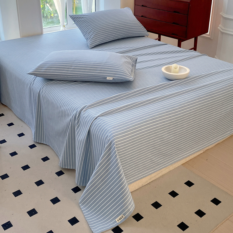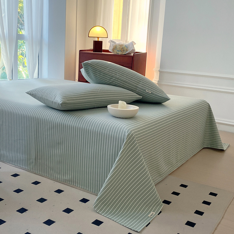 【四季家纺丨良品故事 老粗布凉席三件套】选用柔软细长的长绒棉为原料,高支高密,自然垂顺亲肤柔软,活性印染工艺,耐洗耐用,平整服帖不易起球,针脚细密做工用心,多色可选四季可用