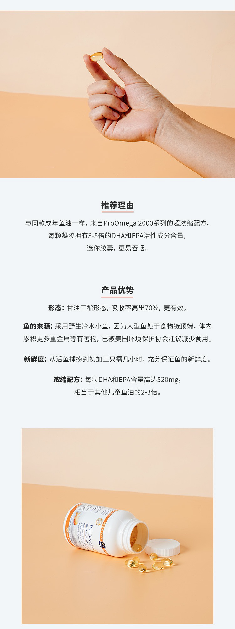 【青少年专用学习鱼油】ProOmega Jr 60粒 提升记忆力专注力 脂肪酸平衡 补充脑黄金DHA