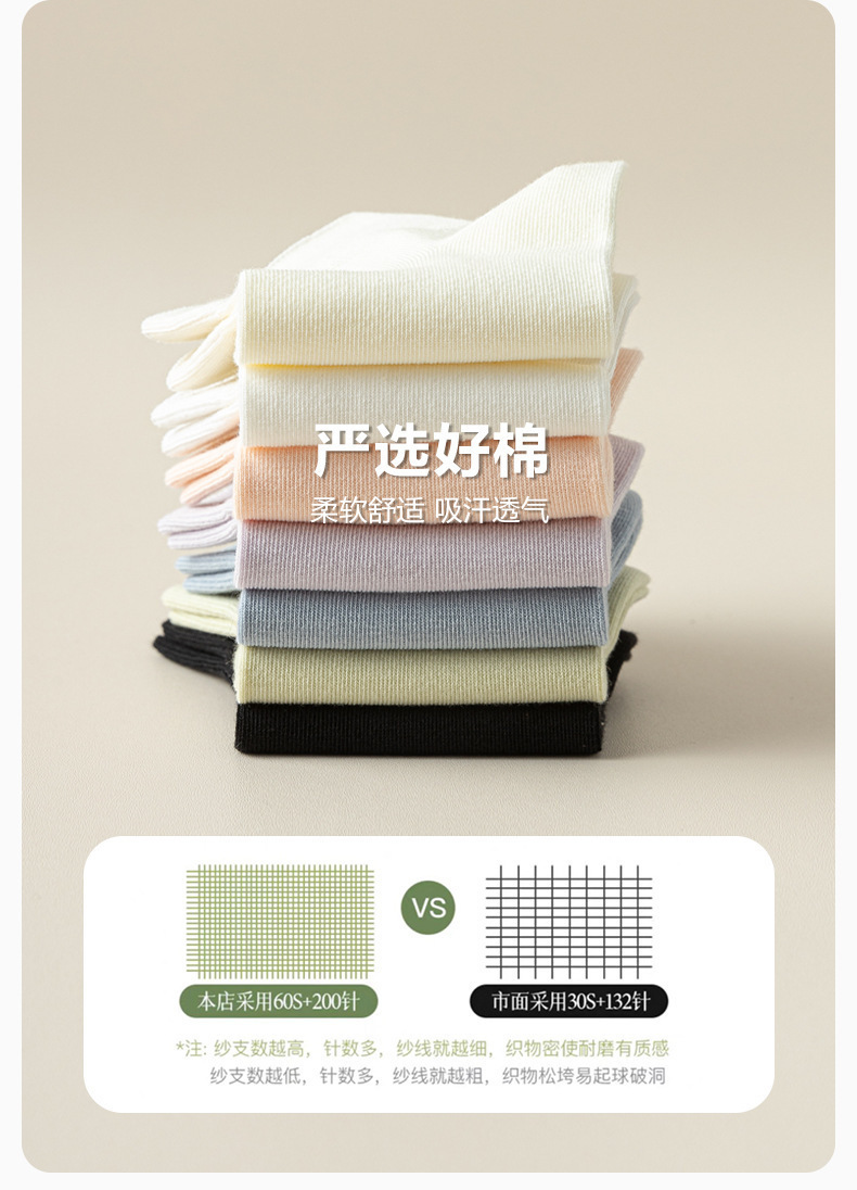 夏季必囤7双超值装 纯棉袜子女夏季薄款抗菌抗起球松口200针织纯棉袜无骨月子短袜多巴胺穿搭中筒袜