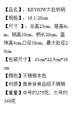 KEYIOW大肚小奶锅采用食品级不锈钢材质,