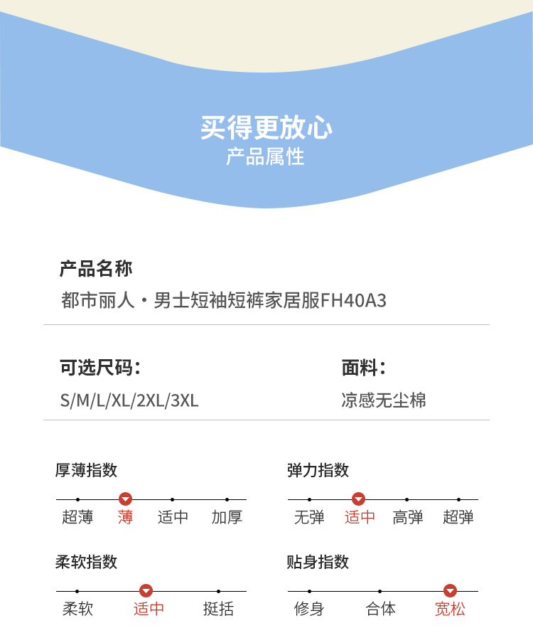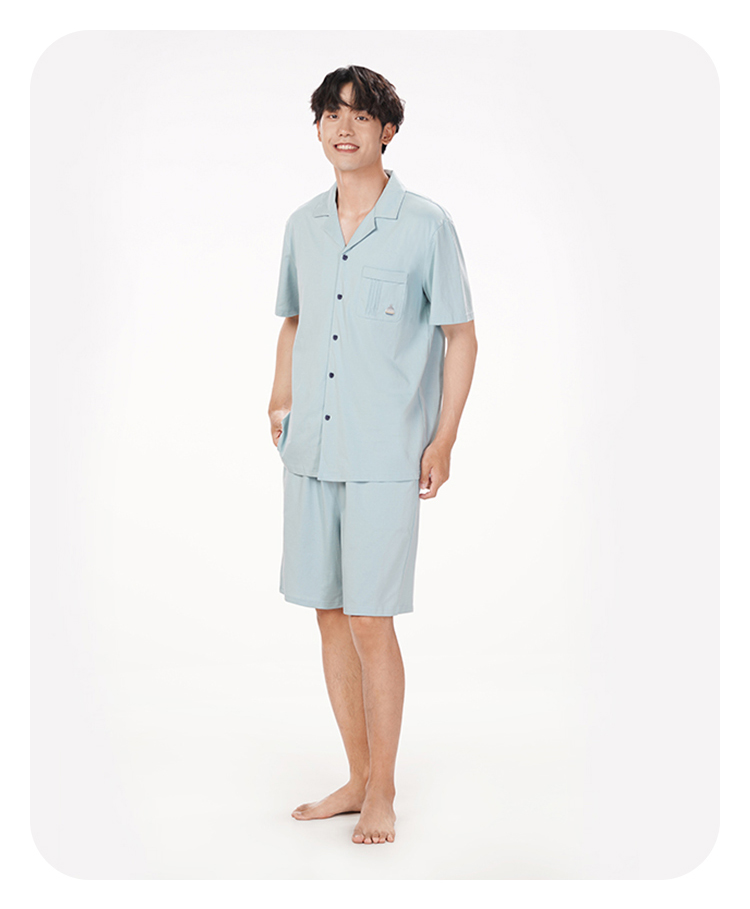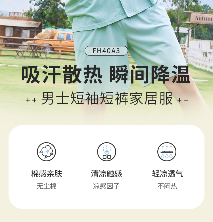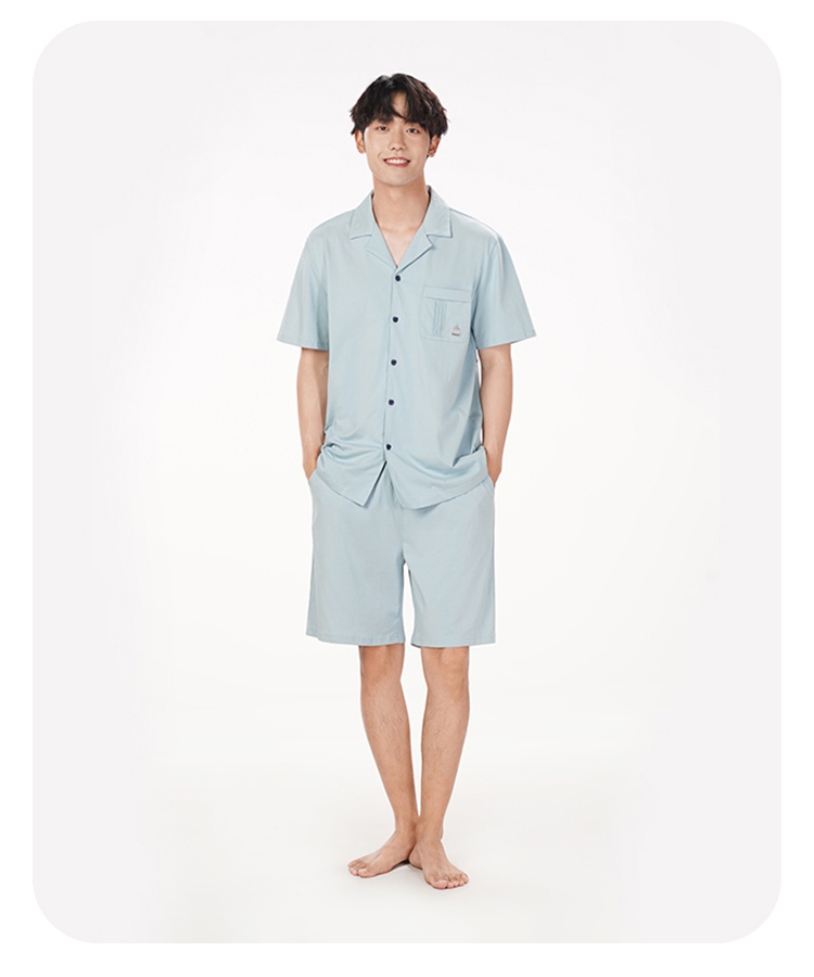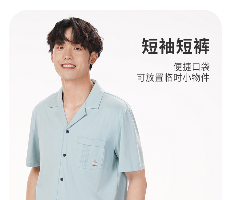 都市丽人都市锋尚好睡好眠春夏睡衣男凉感无尘棉家居服薄款短袖短裤男士无尘棉套装FH40A3