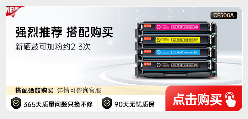 绘威CF500A 202A四色碳粉套装带芯片 适用惠普HP M254dn/dw M254nw M280nw M281cdw M281fdw M281fdn墨粉