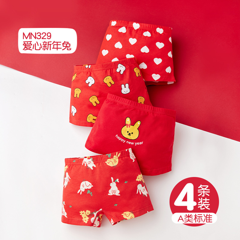 【兔年限定面包兔A类95%棉儿童小内裤女4条装!】适合宝宝贴身穿的A类平角内裤 新款紫色兔子女童平角四角裤 短裤100-150cm可爱卡通印花图案 更受孩子们的喜爱