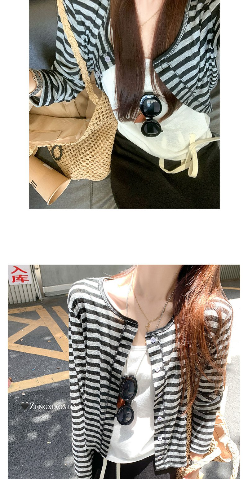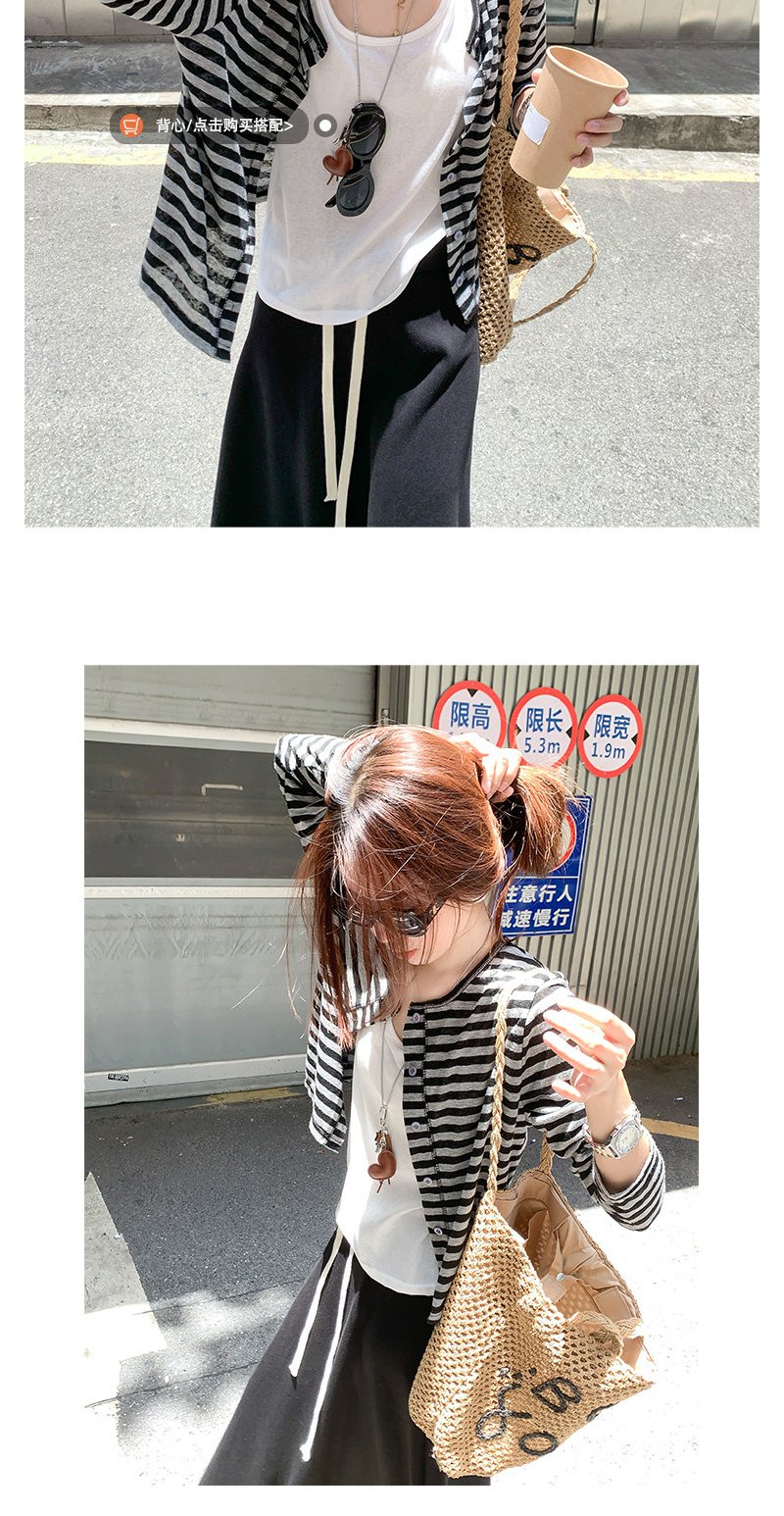 <曾小咸推荐>黑白条纹防晒针织开衫女夏