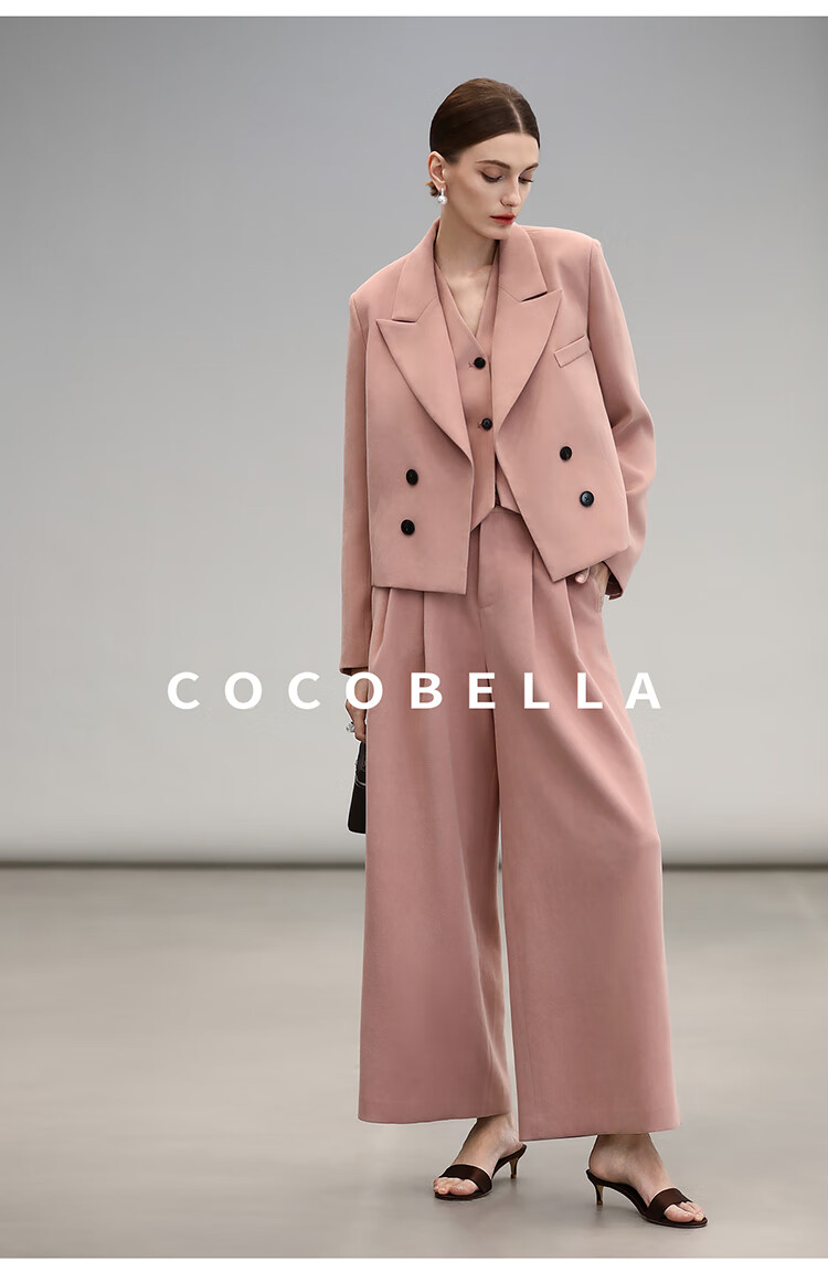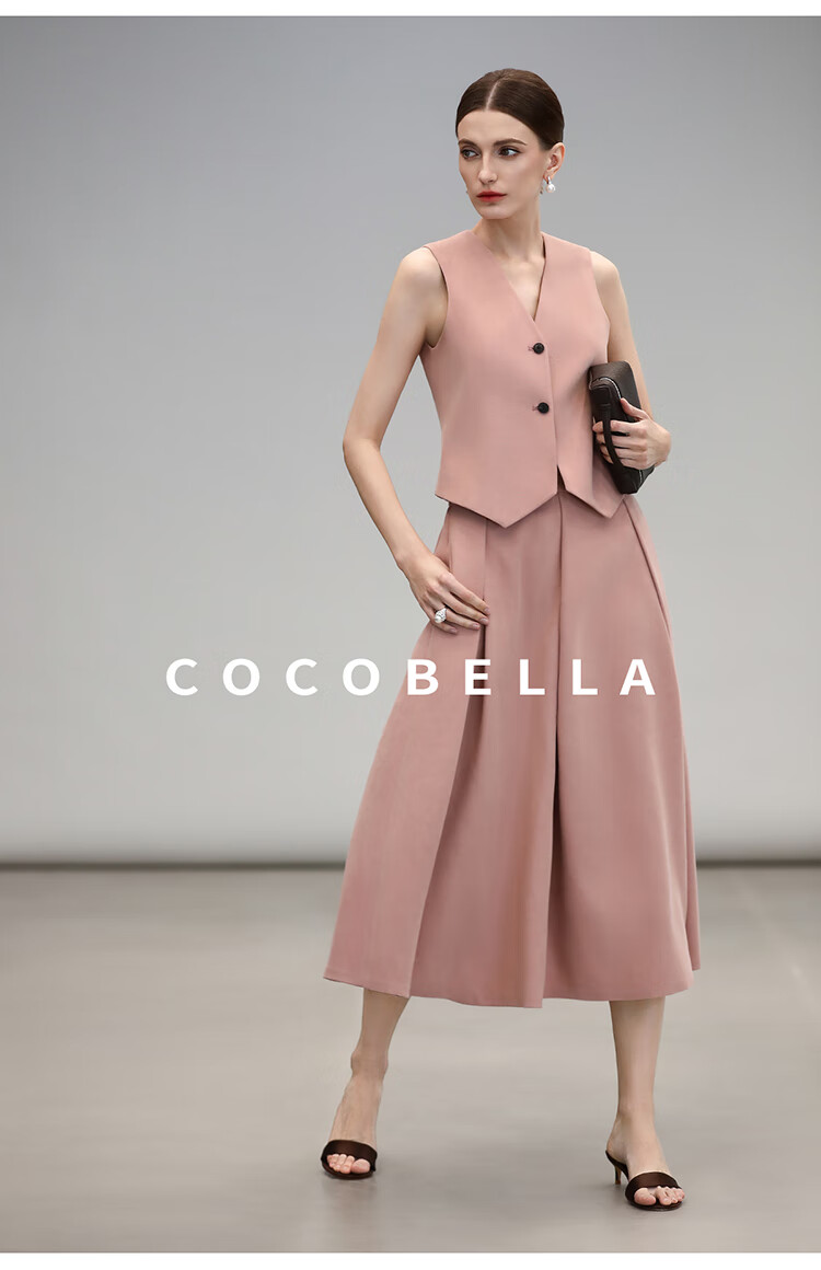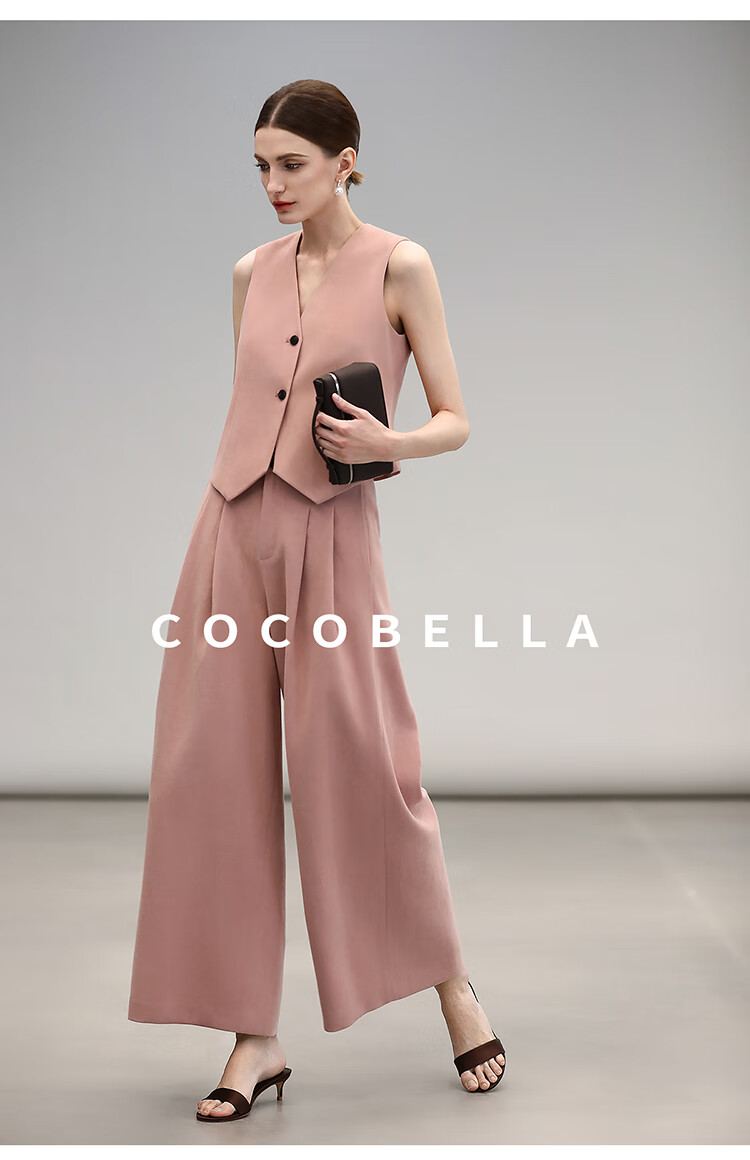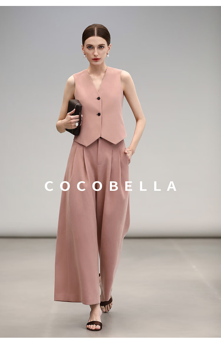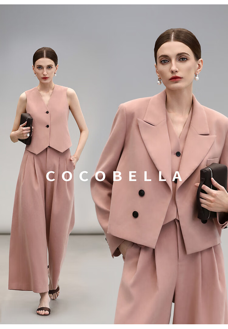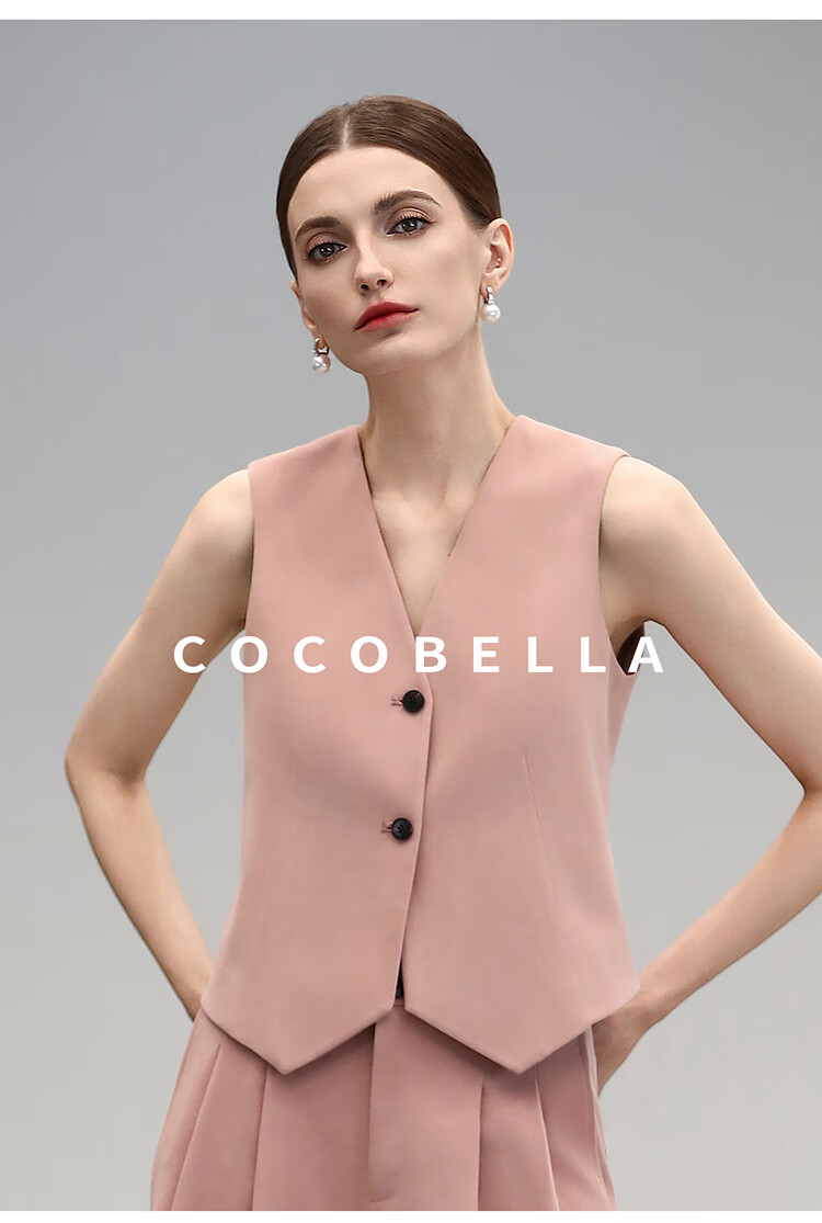 COCOBELLA[浪漫粉]磨毛粗斜纹西装马甲女25春通勤马夹WS0023