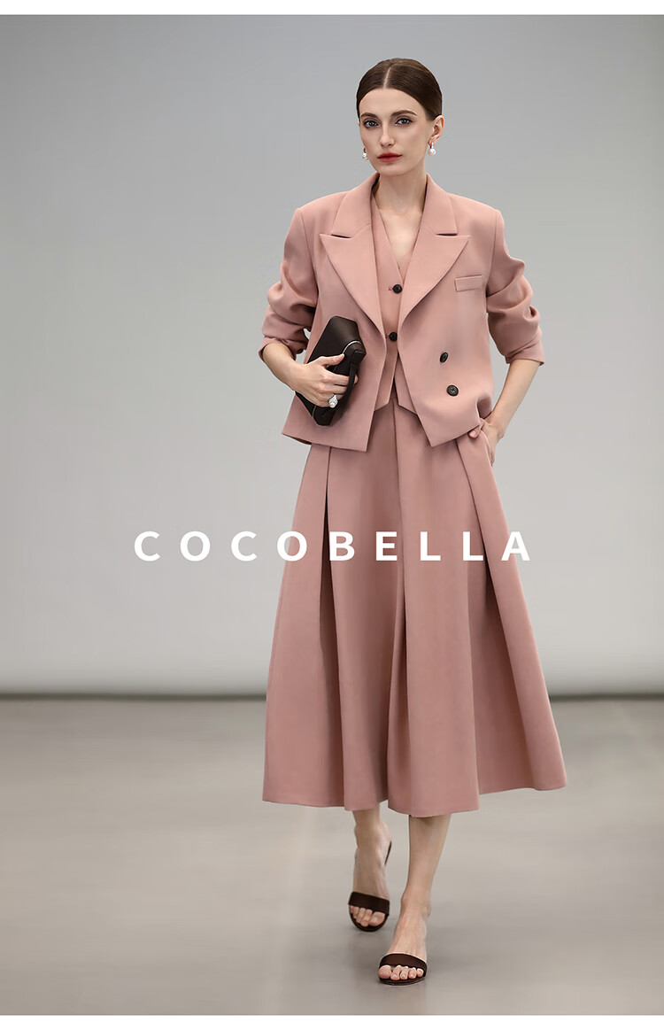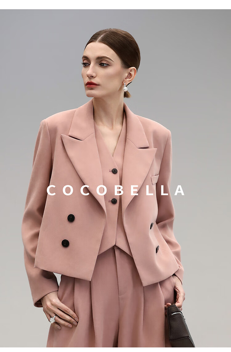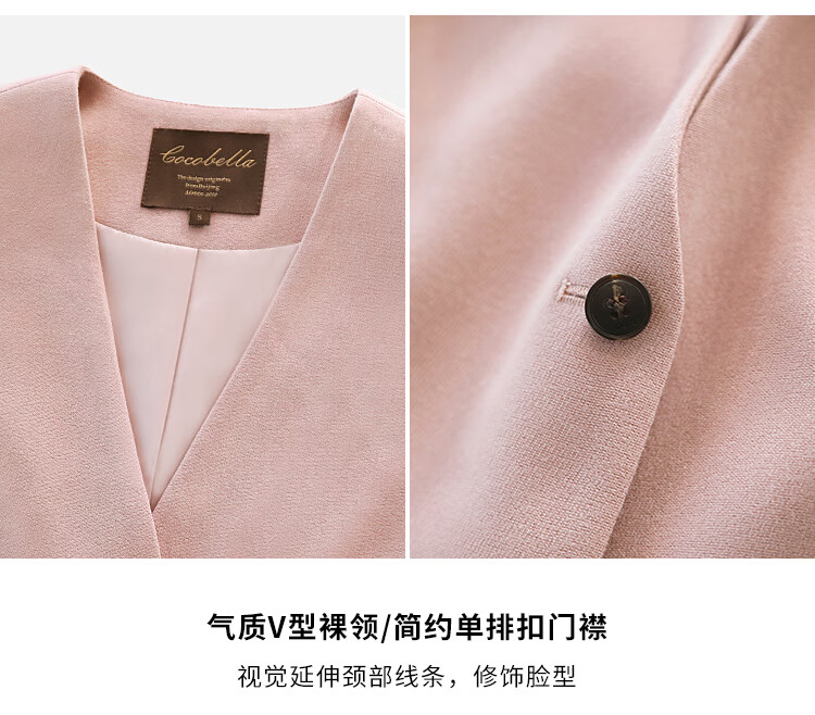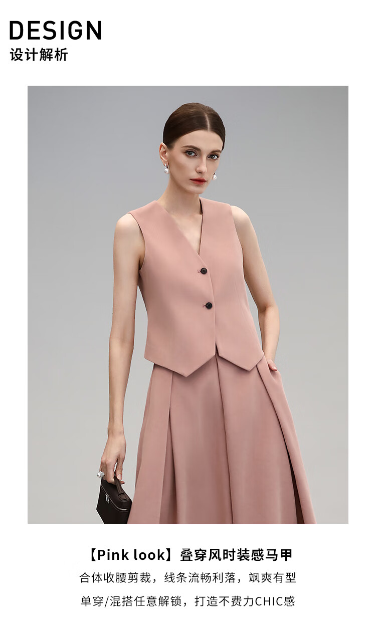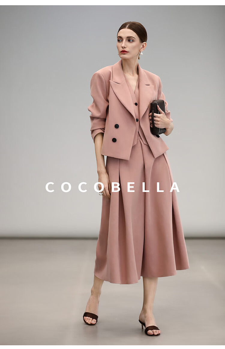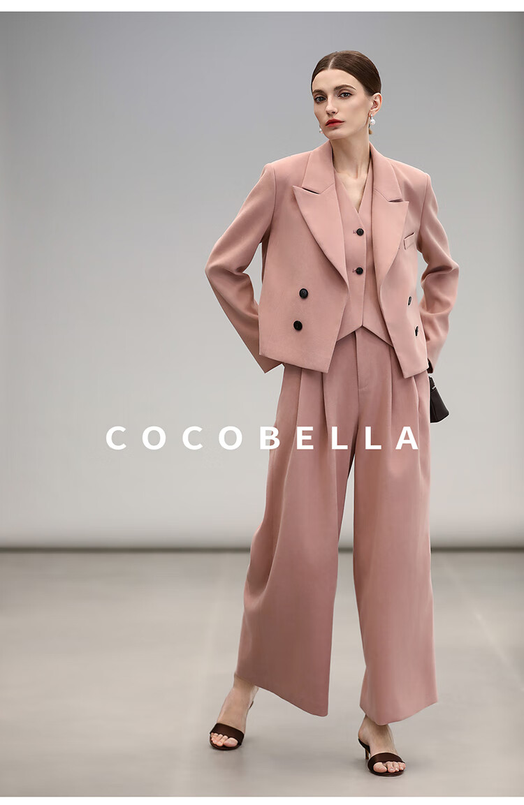 COCOBELLA[浪漫粉]磨毛粗斜纹西装马甲女25春通勤马夹WS0023
