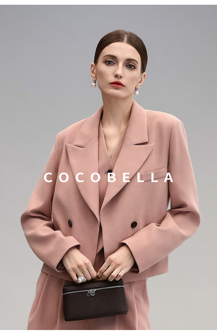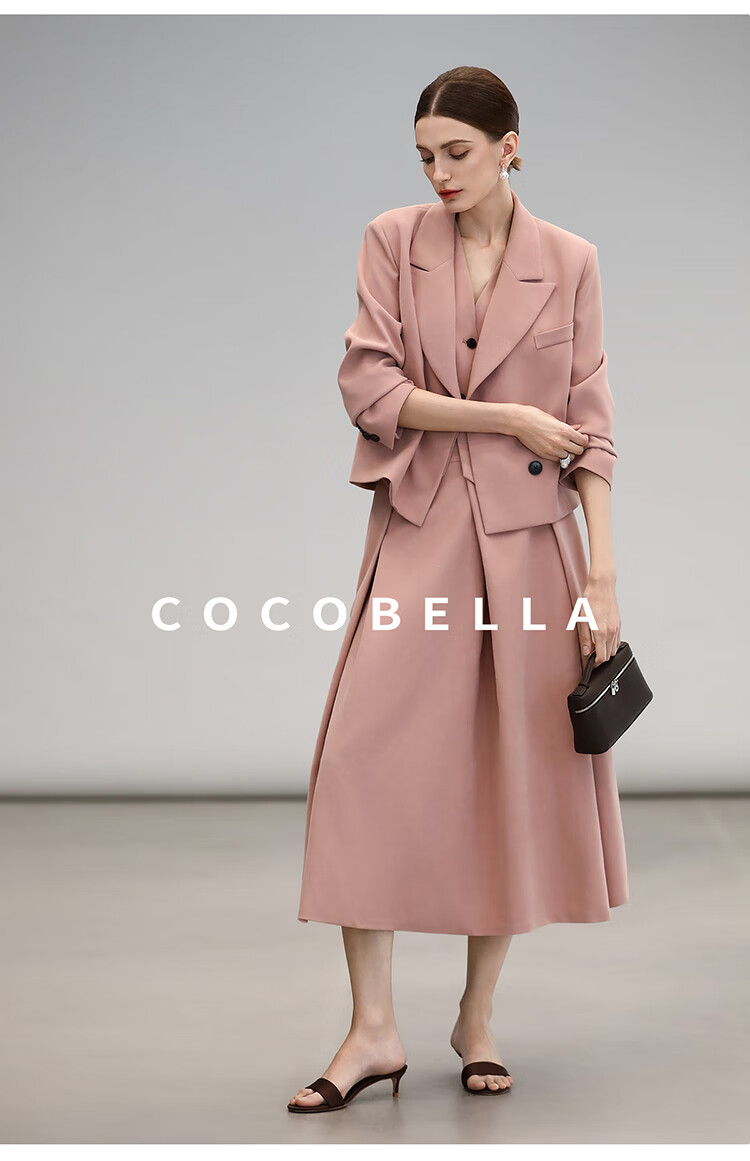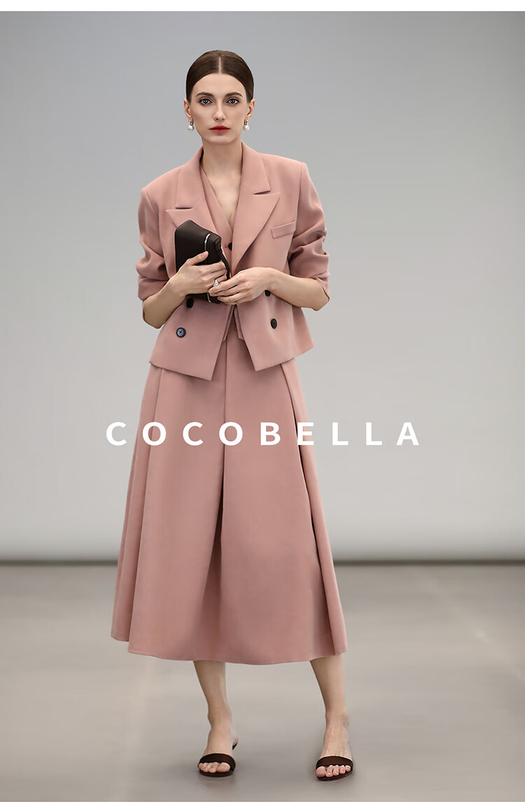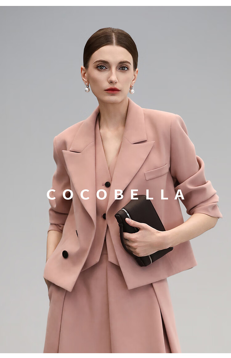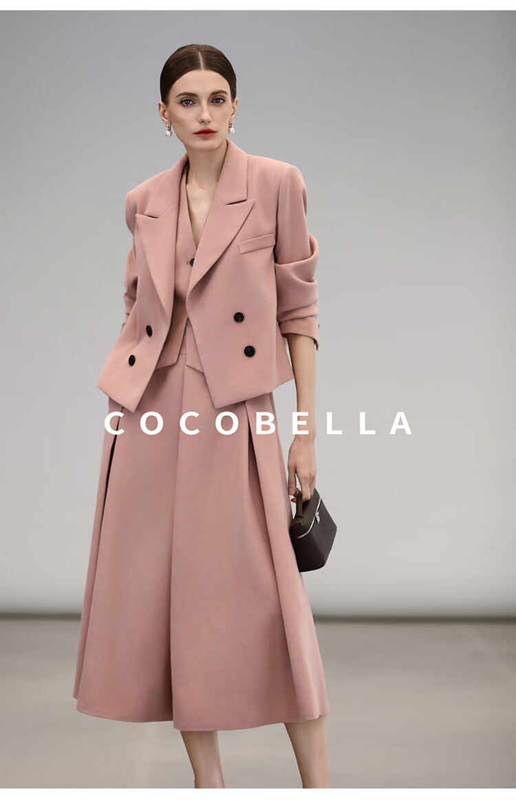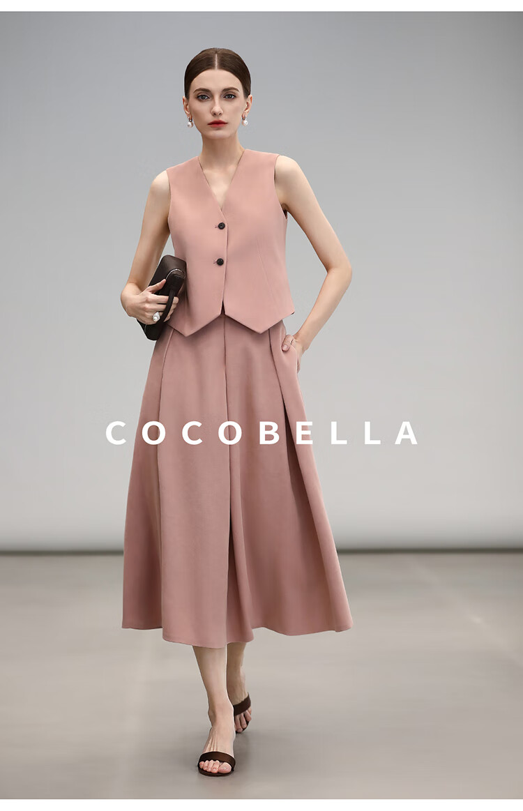 COCOBELLA[浪漫粉]磨毛粗斜纹西装马甲女25春通勤马夹WS0023