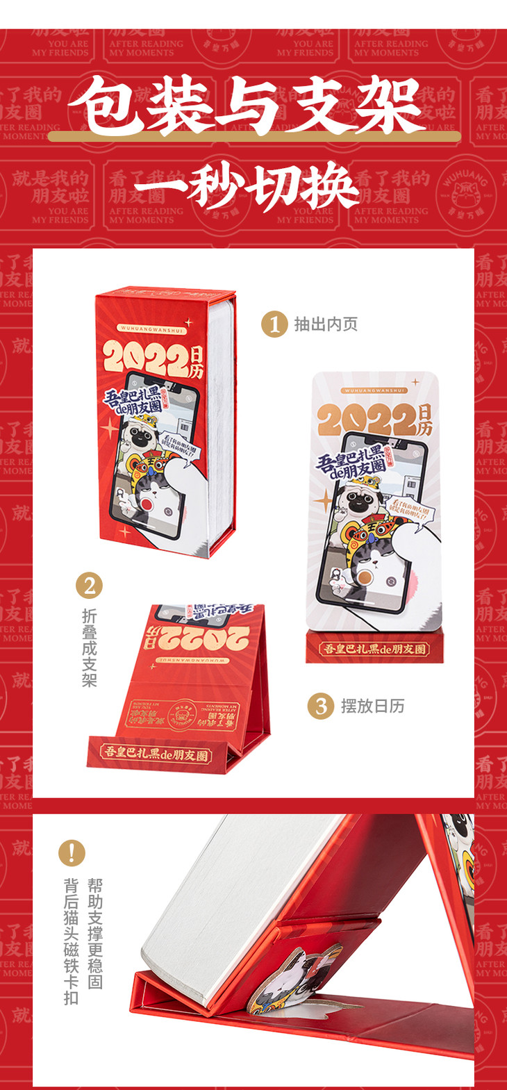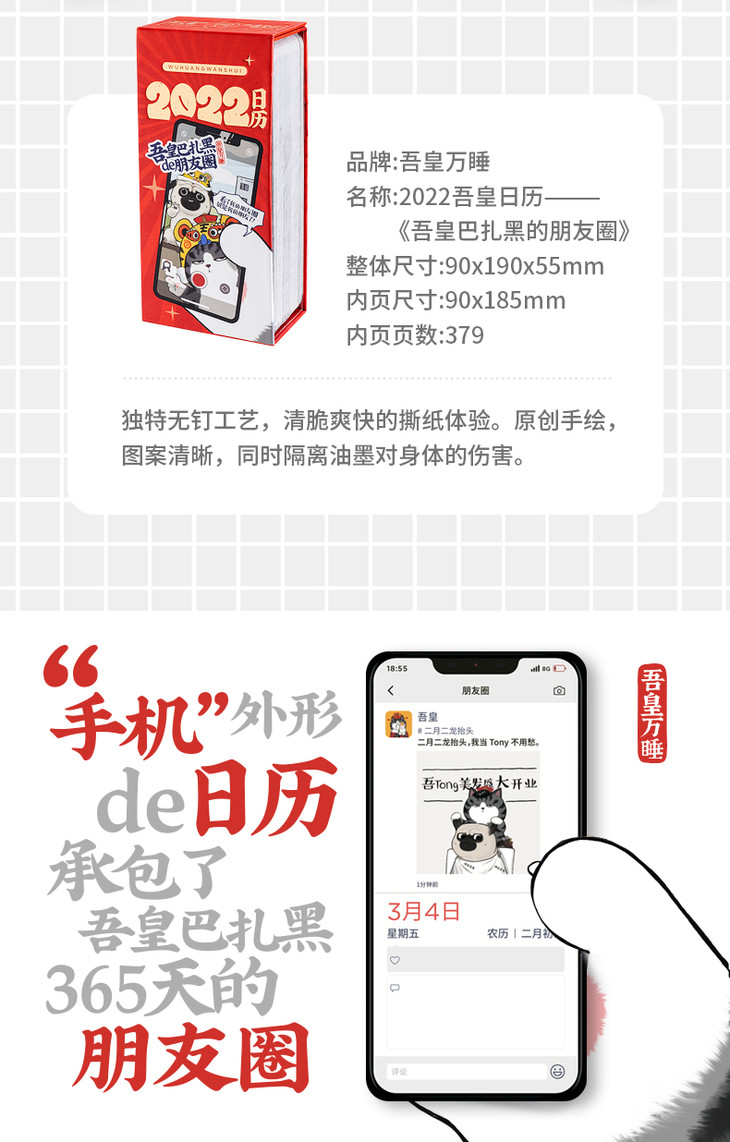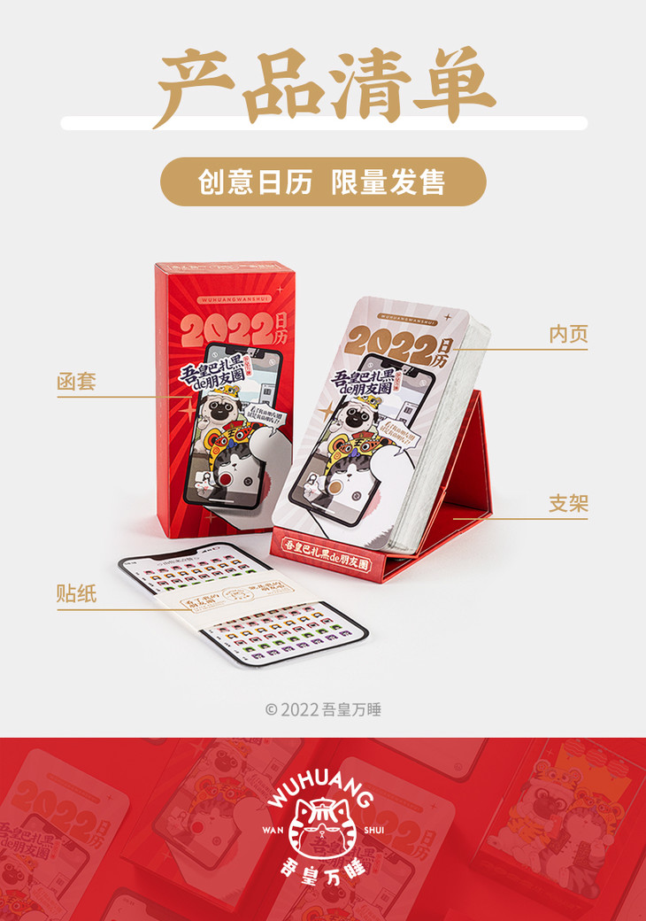 齐心WHBZH001 吾皇万睡2022年日历 吾皇巴扎黑de朋友圈