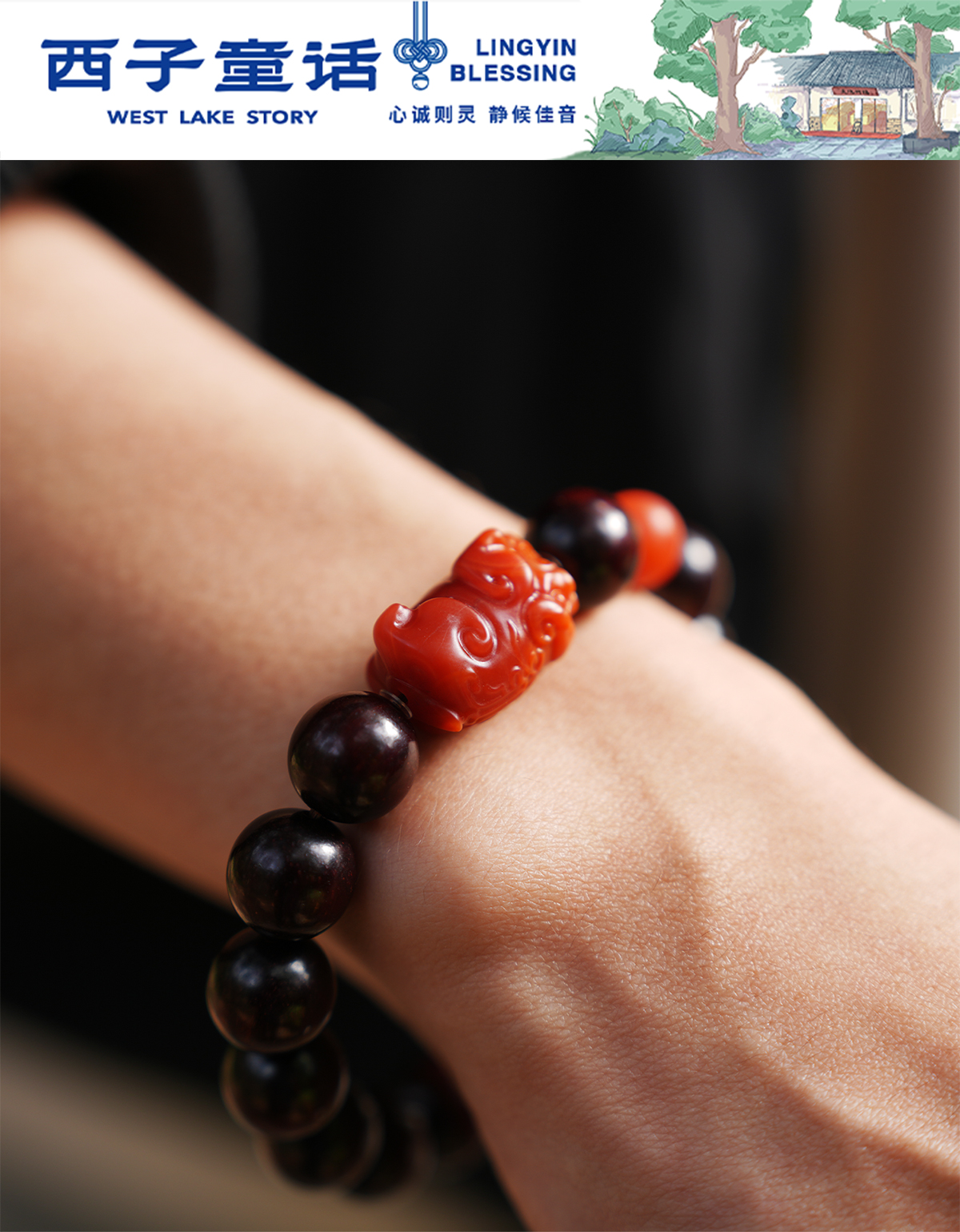 【预售3-5天】灵隐文创 小叶紫檀手串男生招米纳福 高货宝物