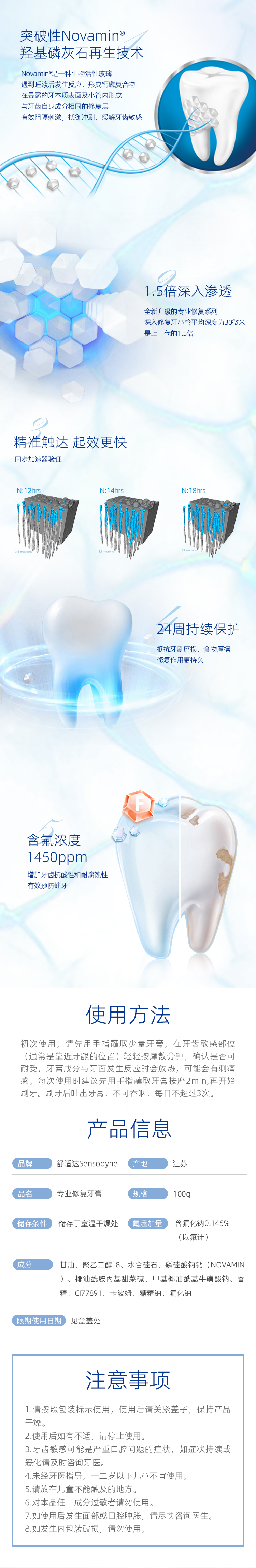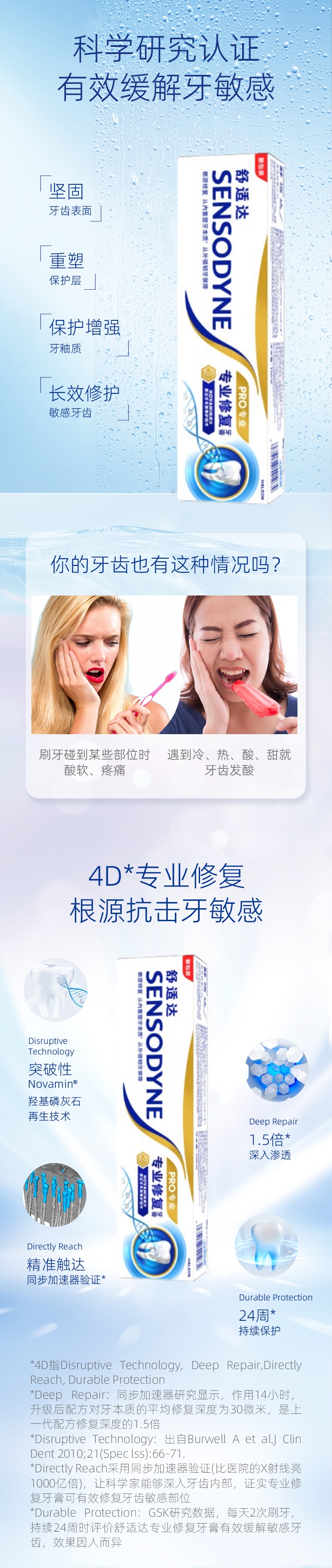 舒适达Sensodyne专业修复牙膏 100g 缓解牙敏感 含氟牙膏