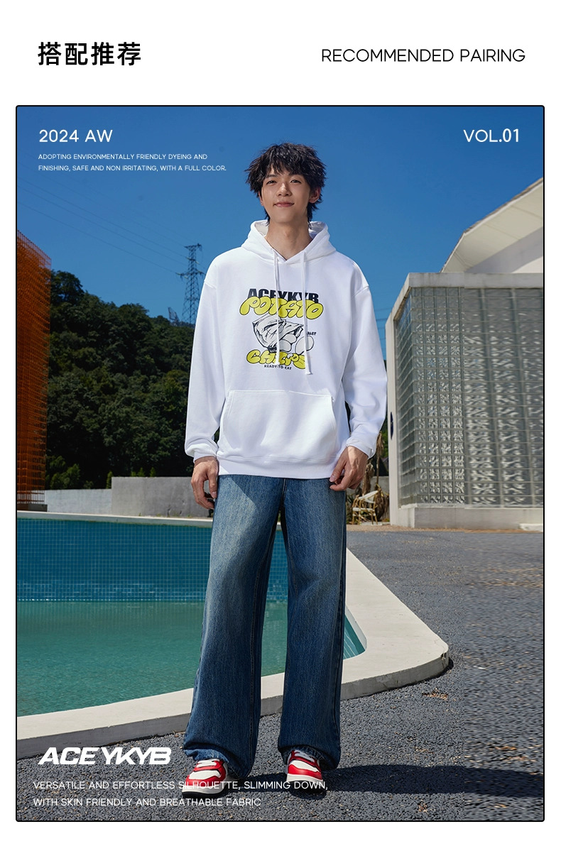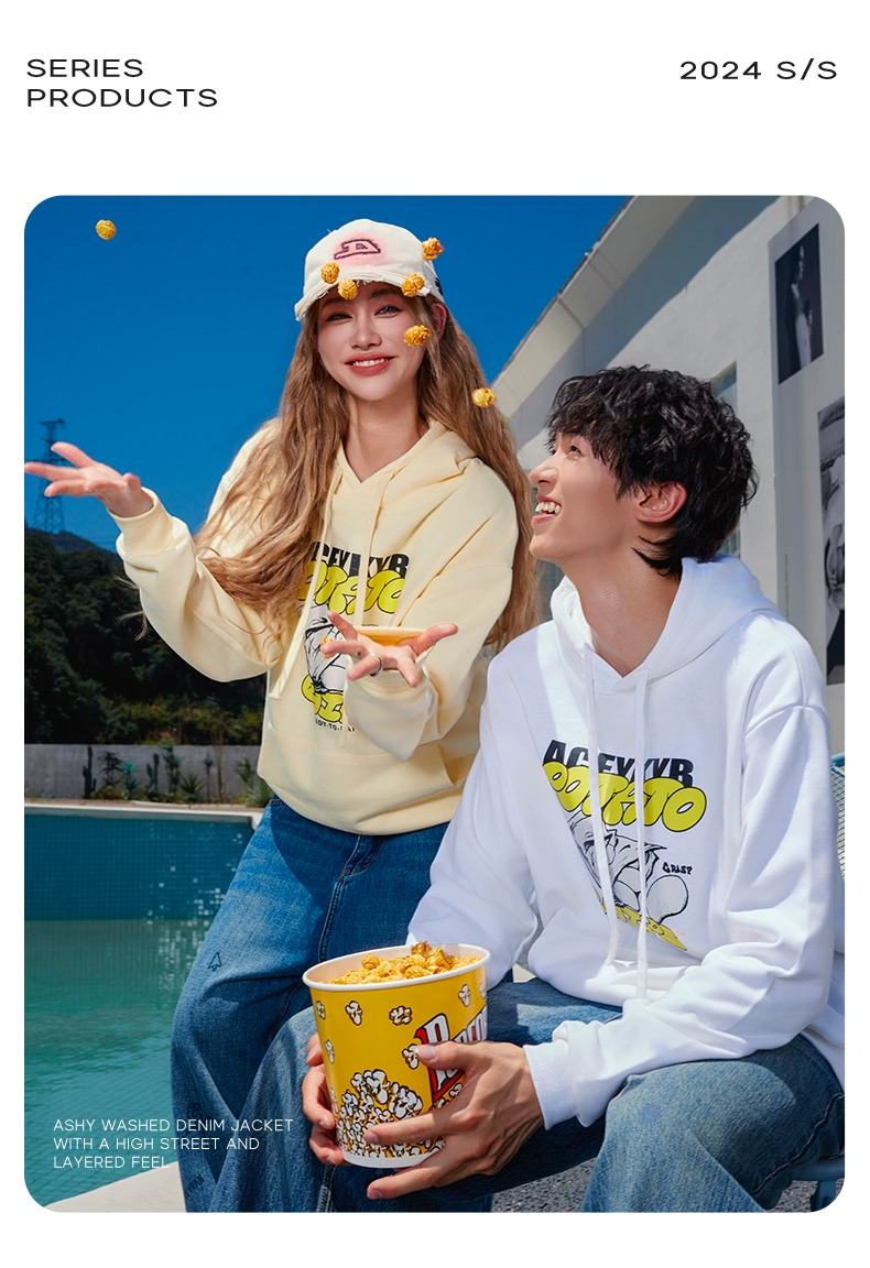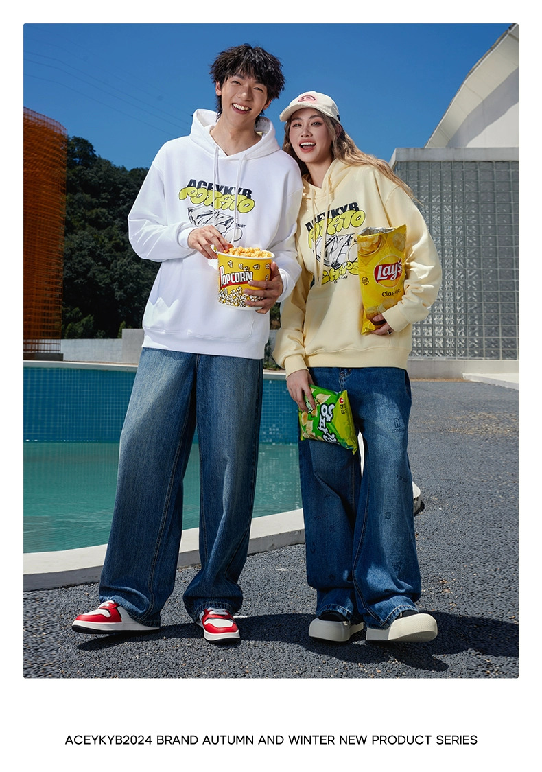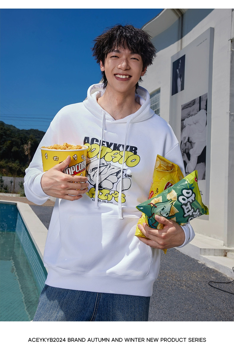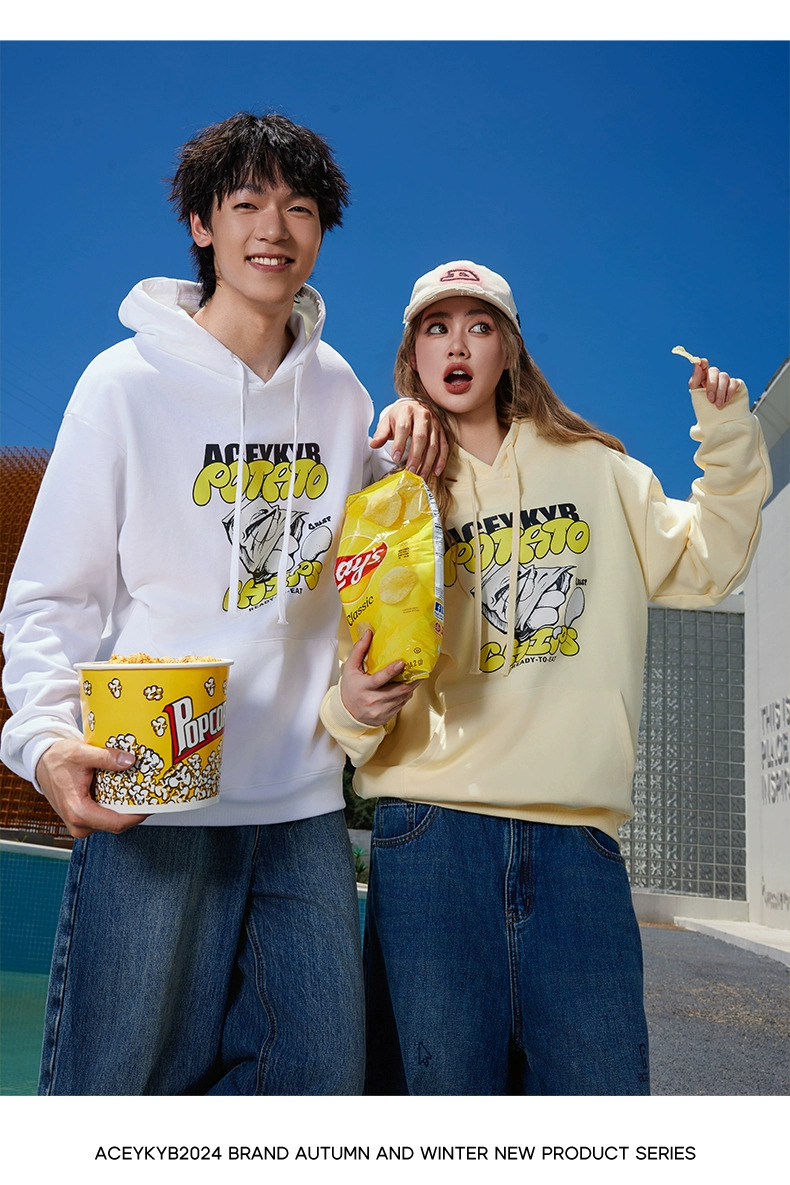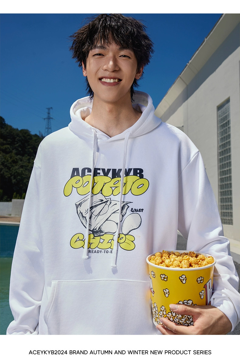 YKYB黄子韬官方店趣味薯片印花情侣连帽卫衣秋季新款宽松上衣