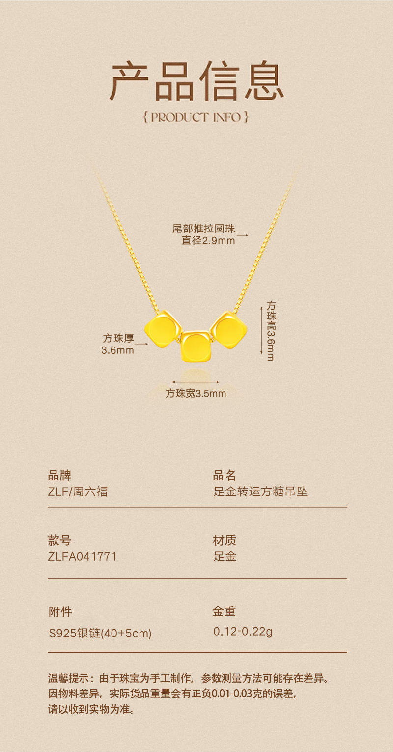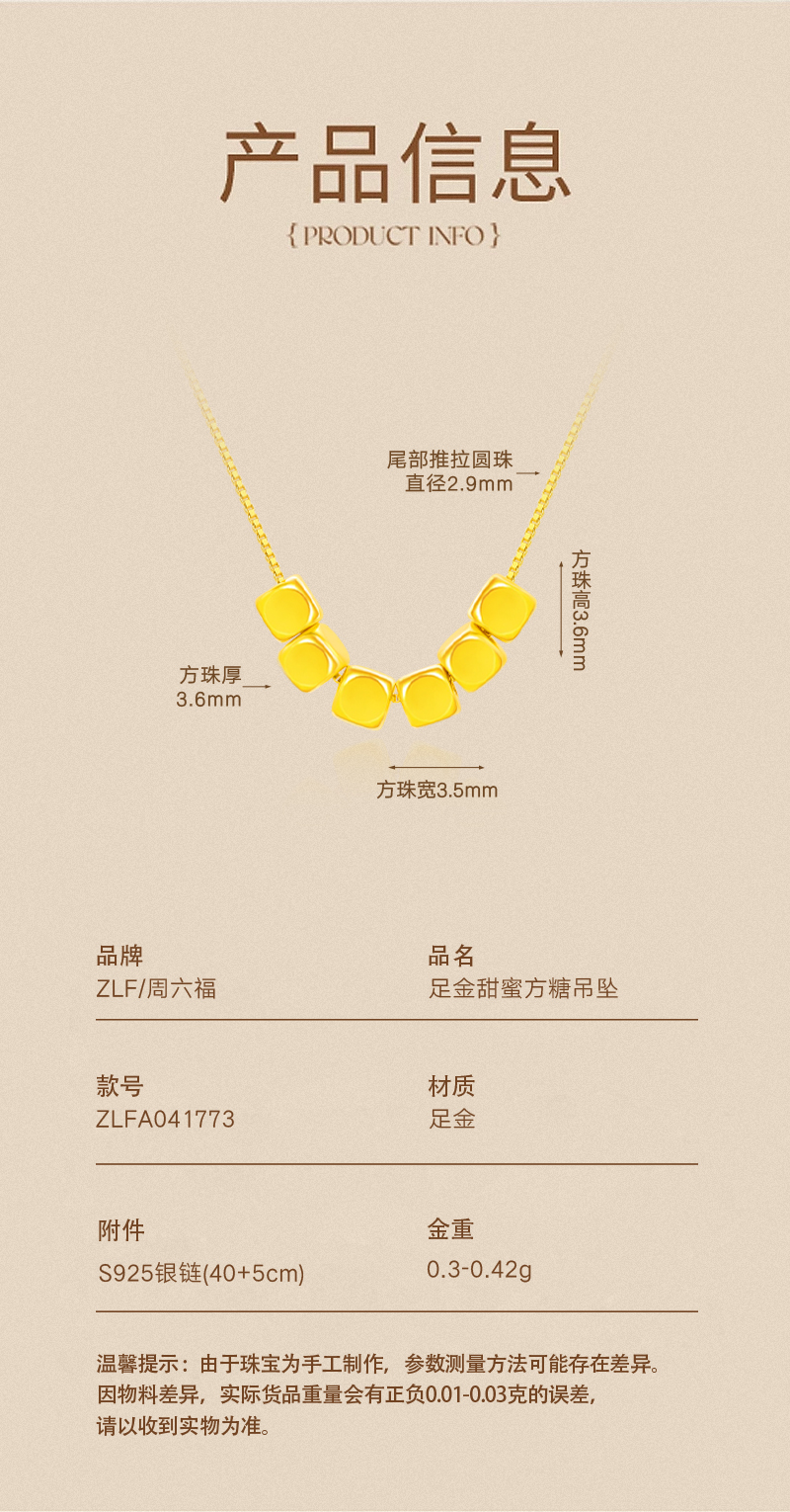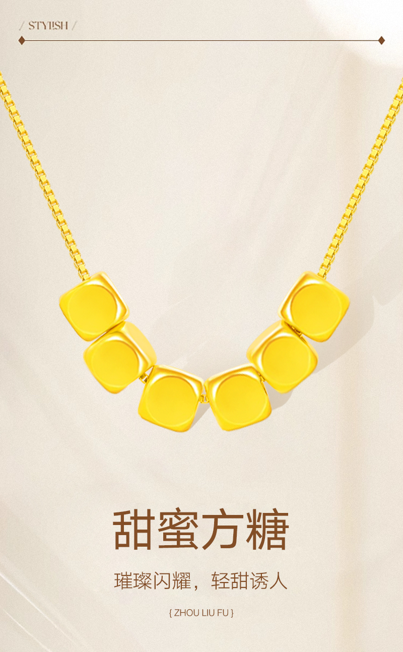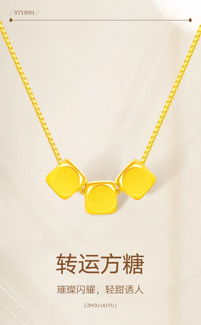 周六福足金小方糖吊坠