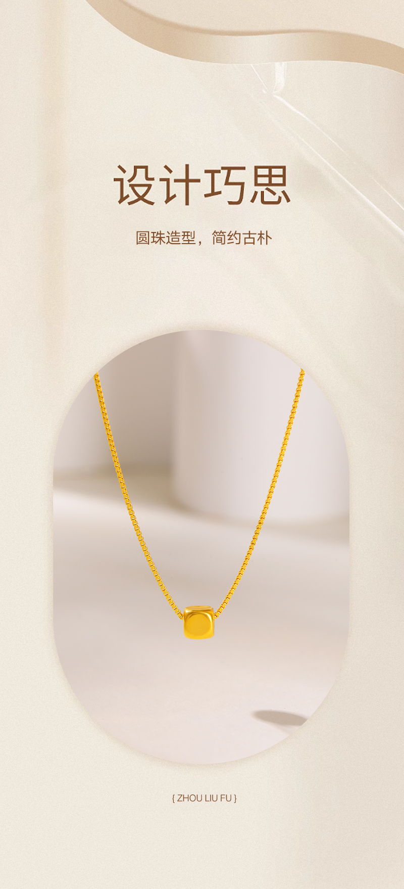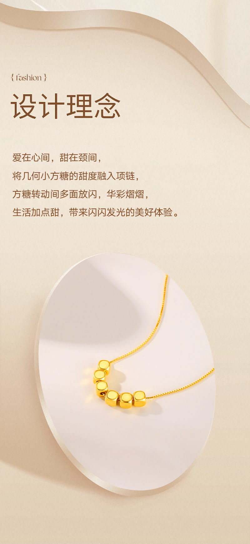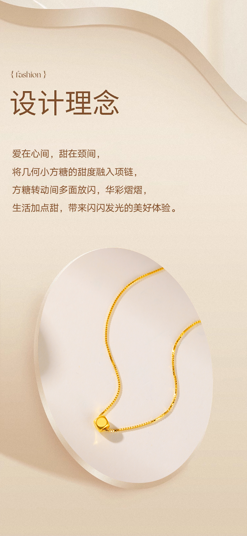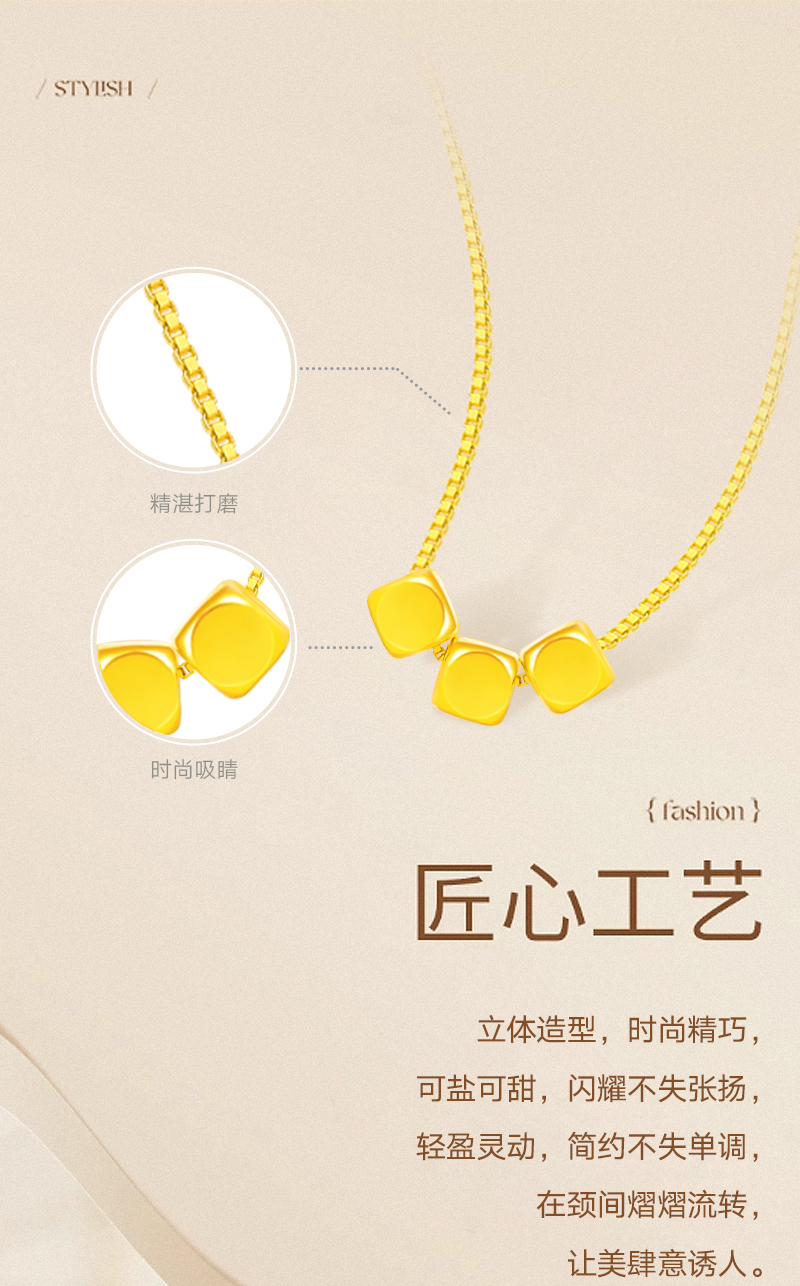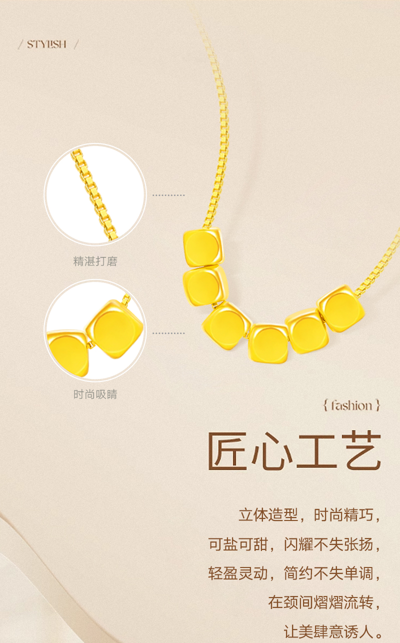 周六福足金小方糖吊坠