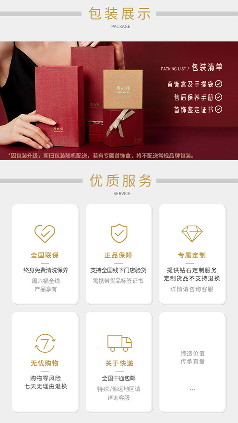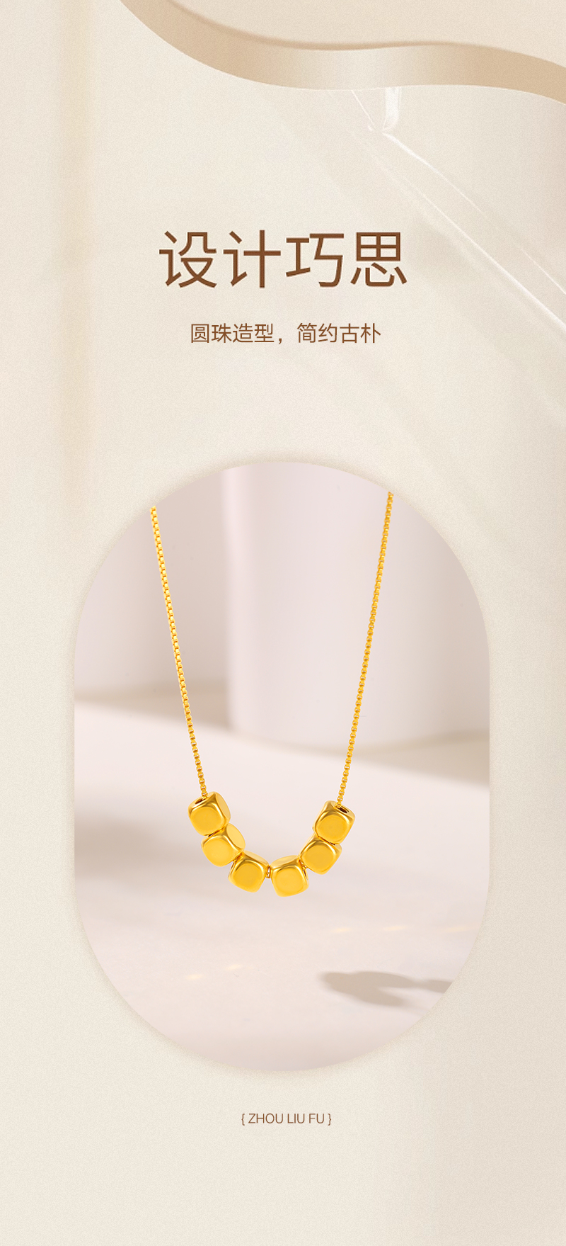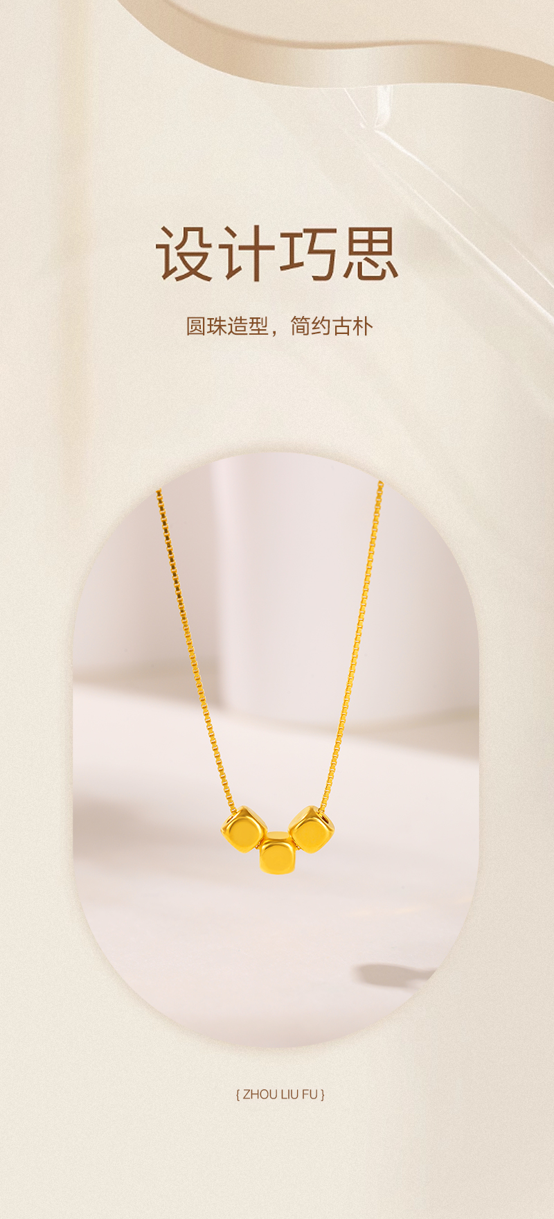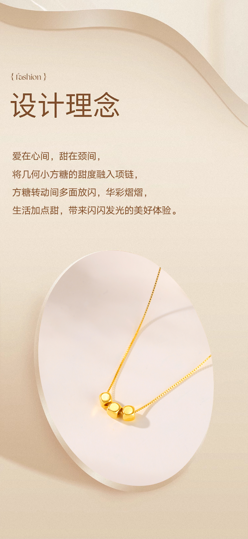 周六福足金小方糖吊坠