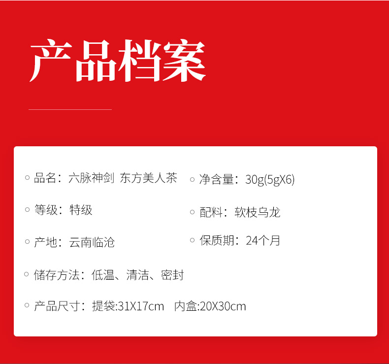 六脉神剑东方美人茶 177元/盒(30g 5g*6)