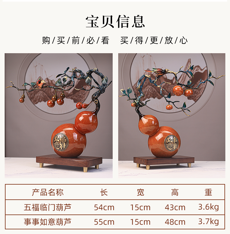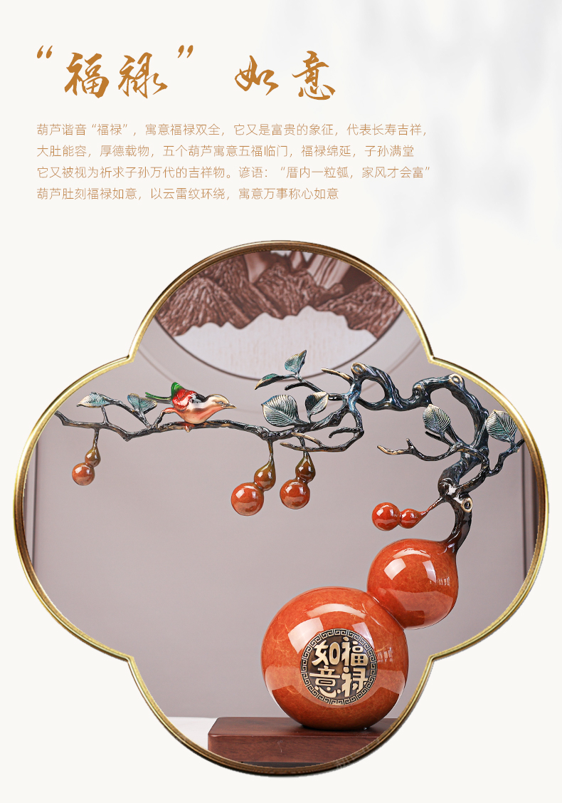 E-QK-BJ1152B 事事如意纯铜葫芦摆件(560*150*440)