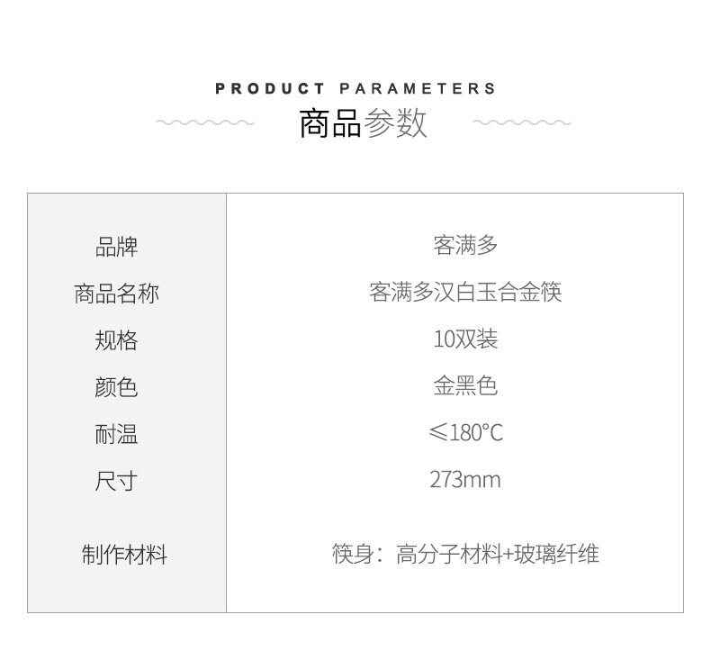 LX10-K32061J客满多汉白玉合金筷10双装(黑色)