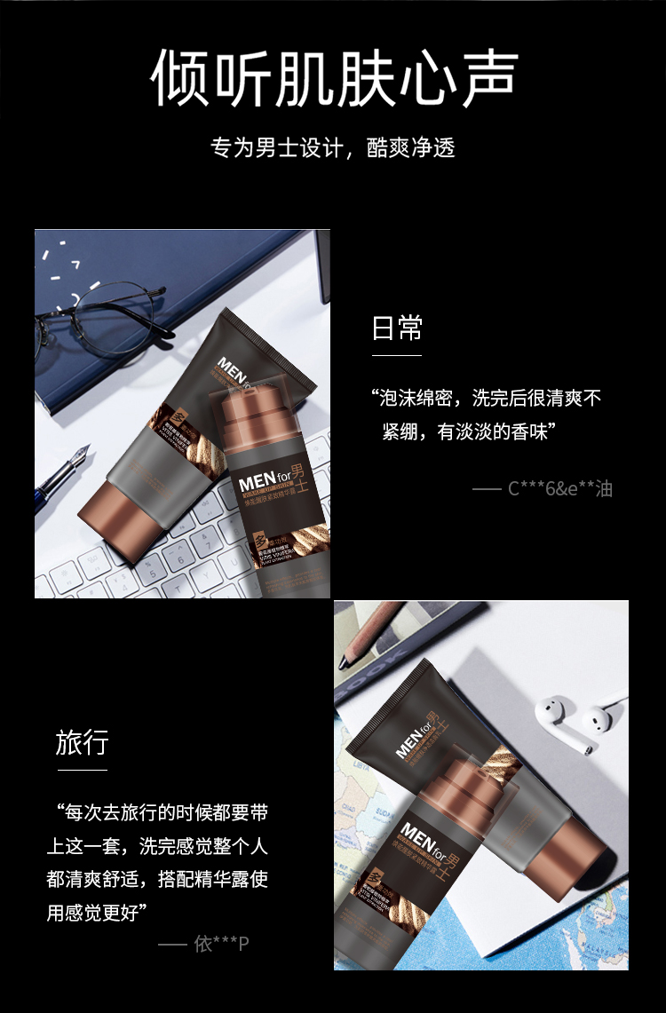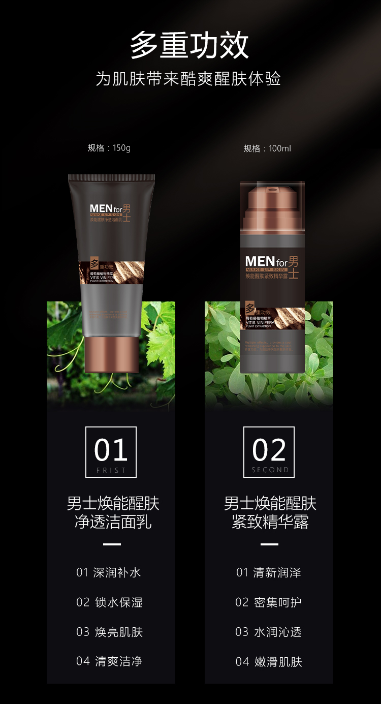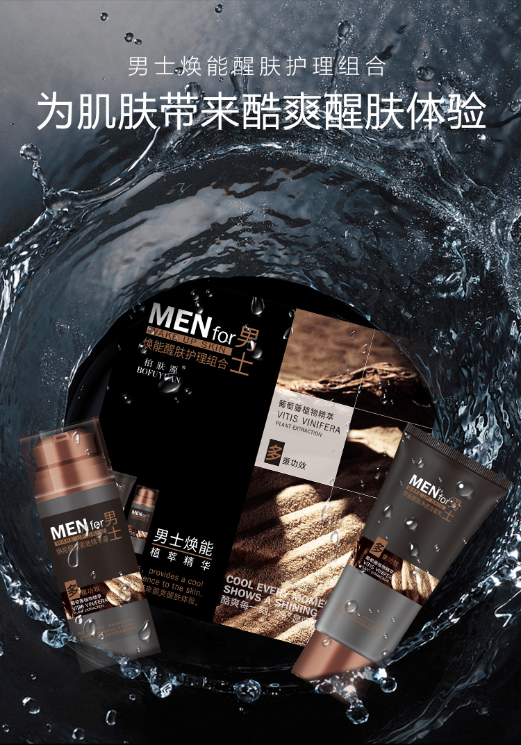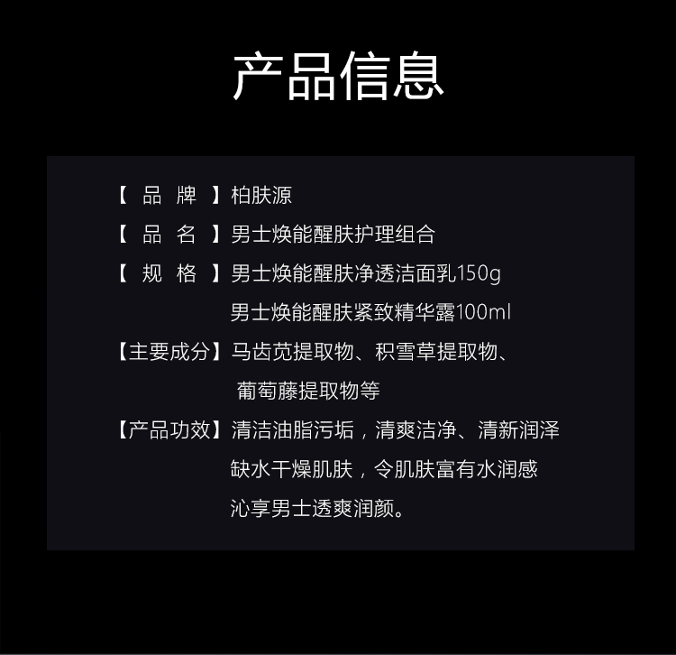 柏肤源 男士焕能醒肤护理 净透洁面乳 紧致精华露