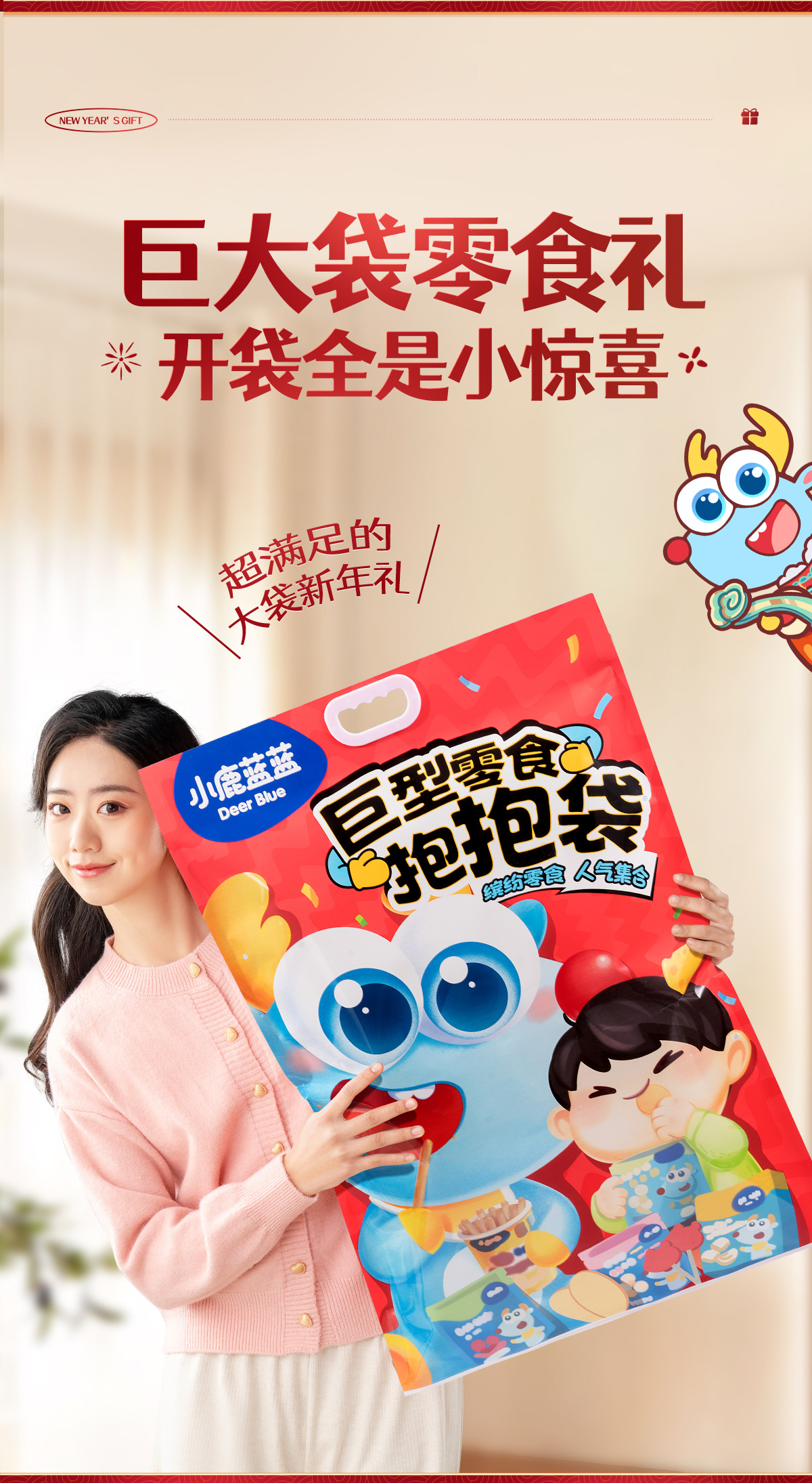 【小鹿蓝蓝_巨型零食抱抱袋】2.1kg休闲38袋零食2025年年货送礼巨型零食