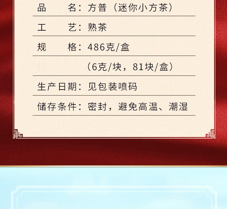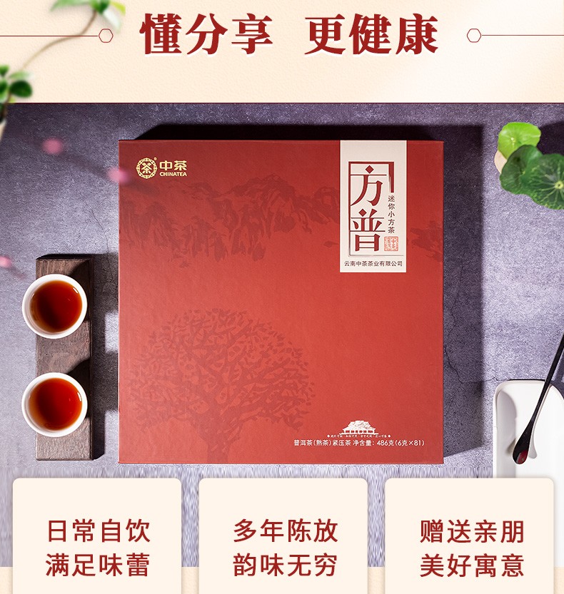 中粮-中茶 云南官方2020年普洱茶云南熟茶方普迷你小方砖486g /云南干仓直发