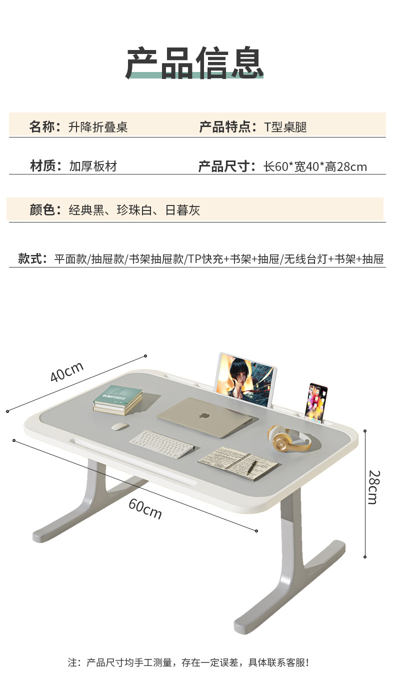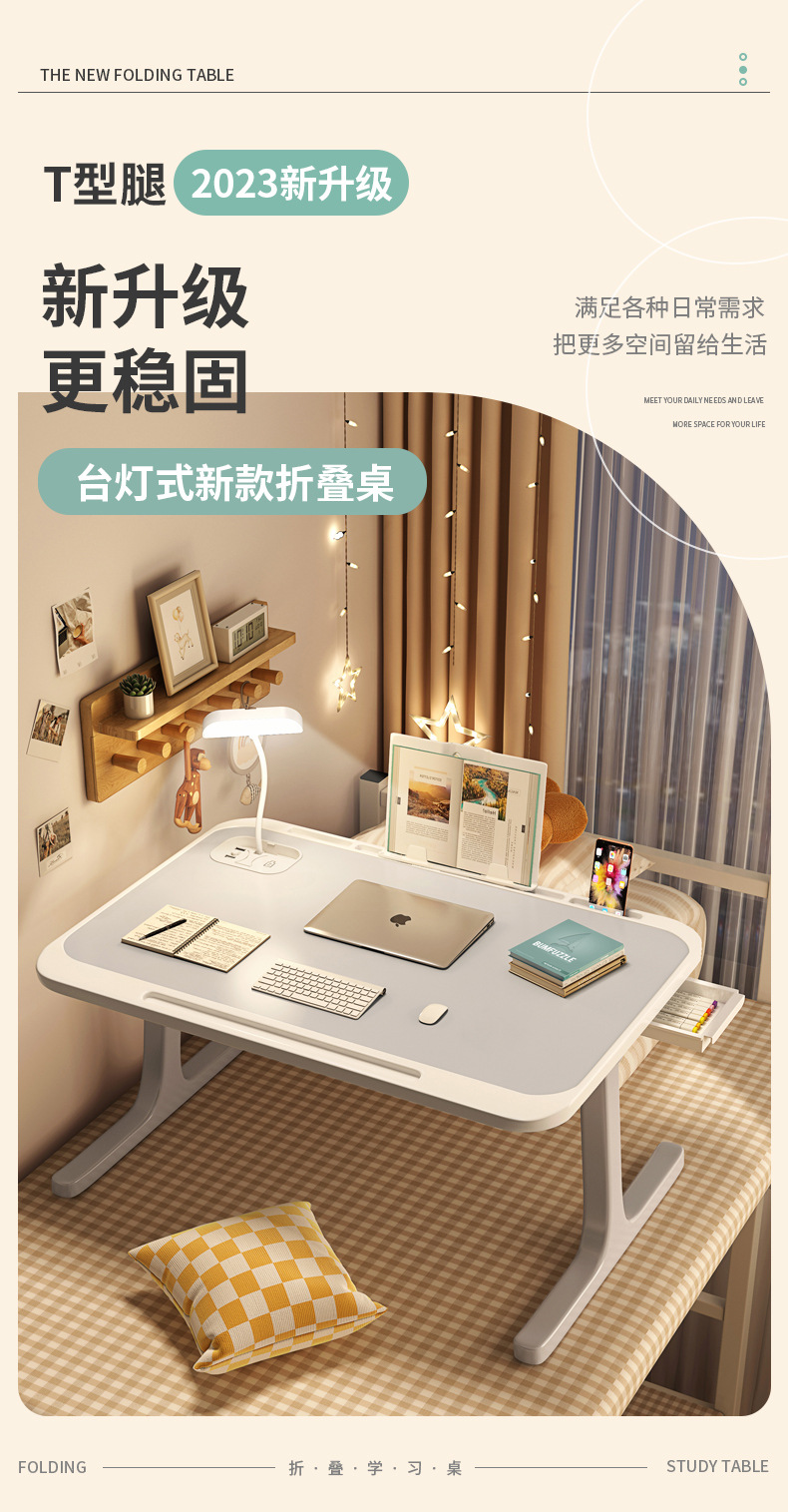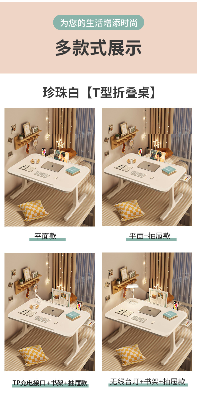 【懂生活更懂你!】床上折叠小桌子🔥吃饭、学习、追剧全搞定!💻📚还带充电接口+书架,懂生活更懂你❤️