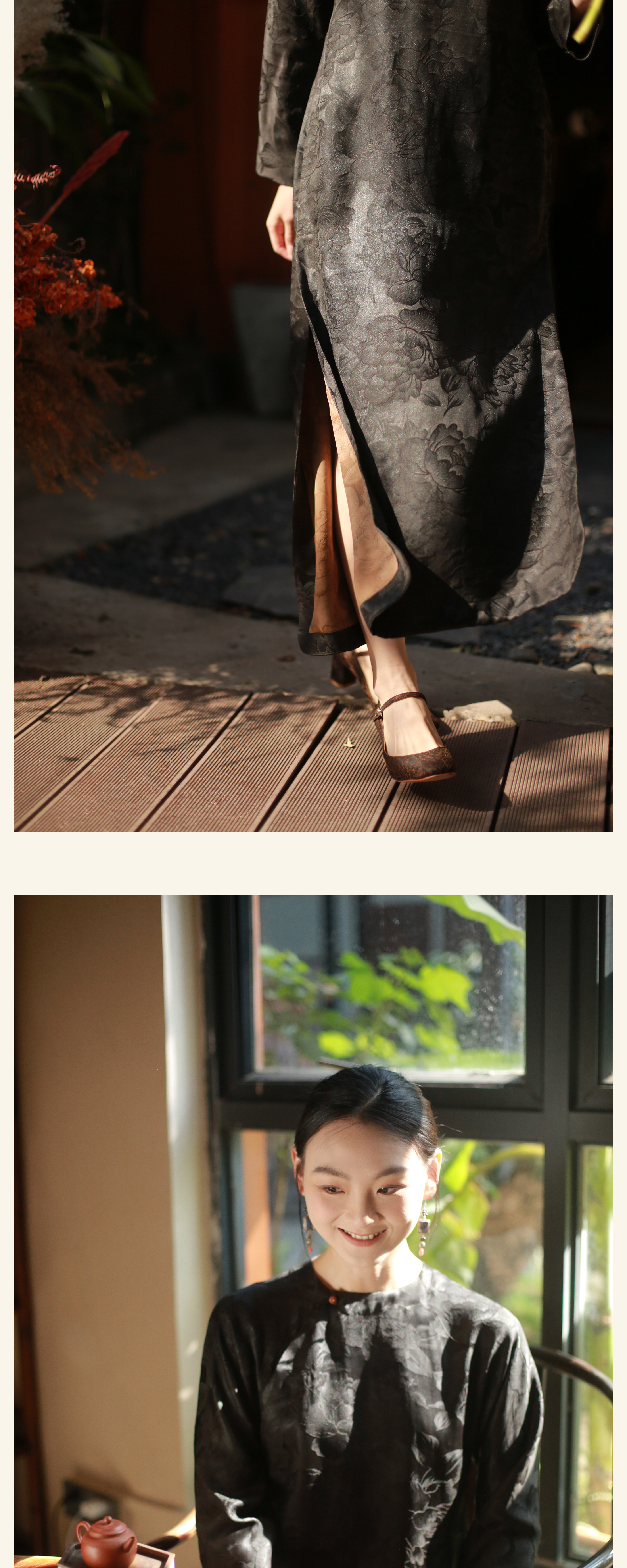 漫物记重磅提花斜襟一粒扣袍子XYS-W234