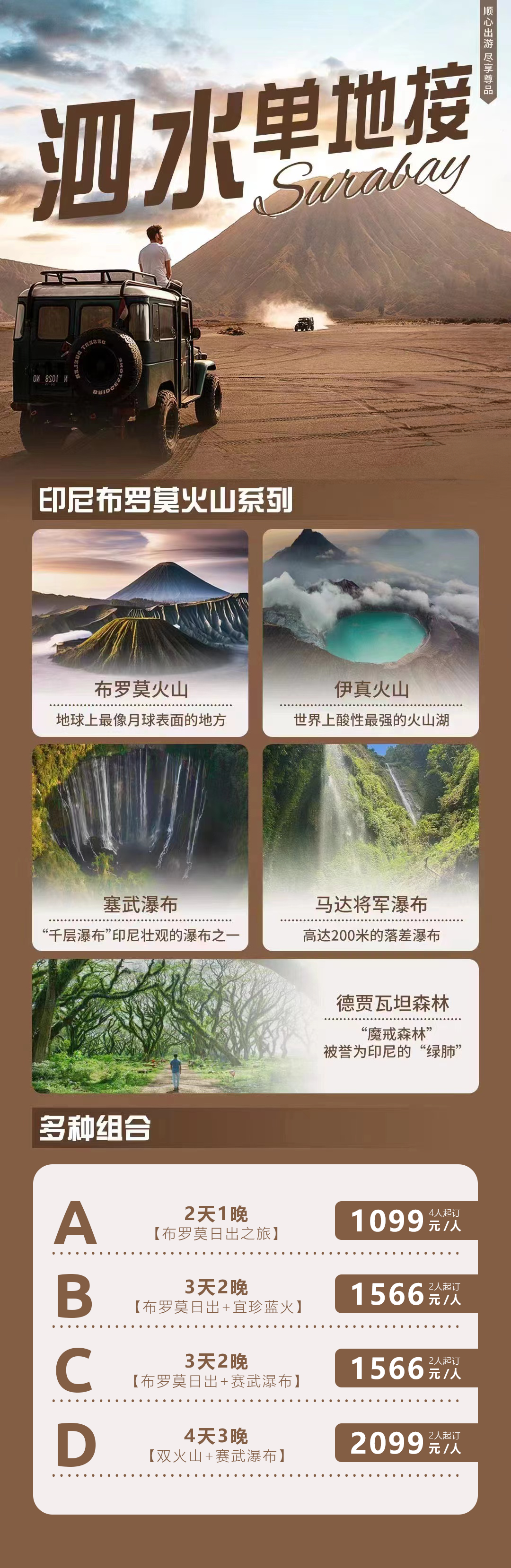 Chill玩印尼!2天1晚/3天2晚/4天3晚酒店住宿+火山门票+当地向导+用车!打卡人气目的地 泗水|赛武瀑布|布罗莫火山|宜珍火山