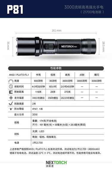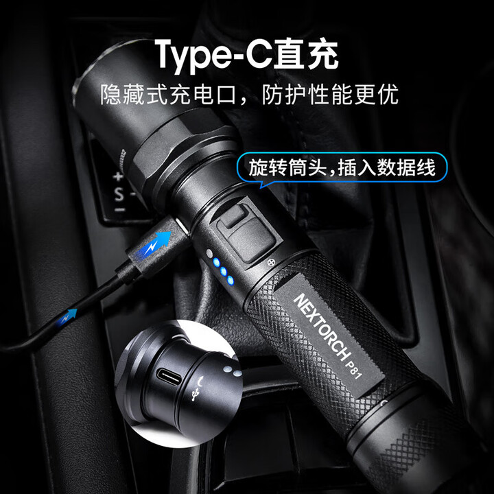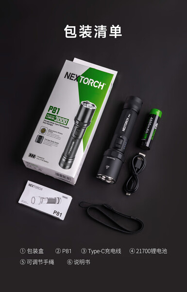 纳丽德(NEXTORCH)P81强光手电筒战术户外超亮远射可充电21700电池家用巡逻专用