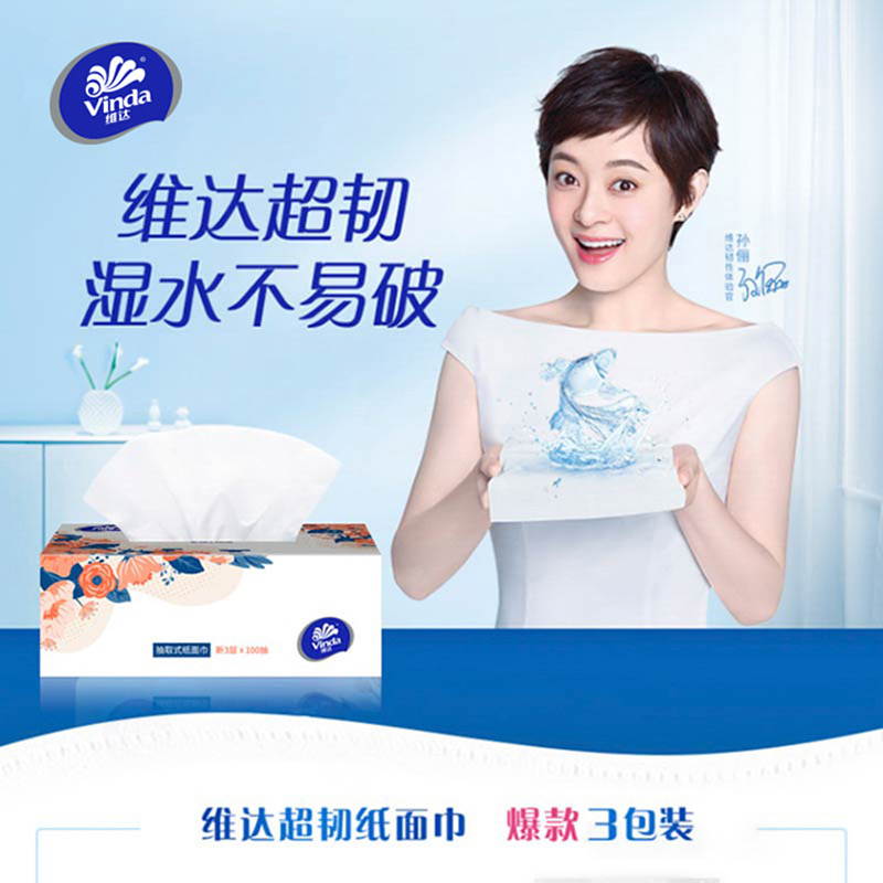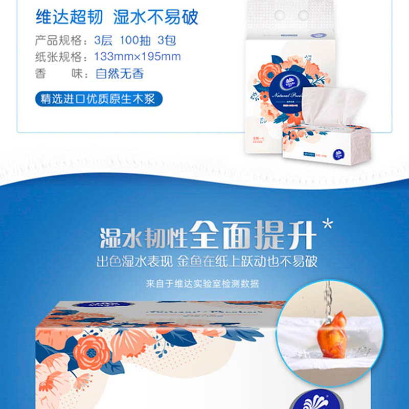 维达超韧抽取面巾100抽3层S码×3包