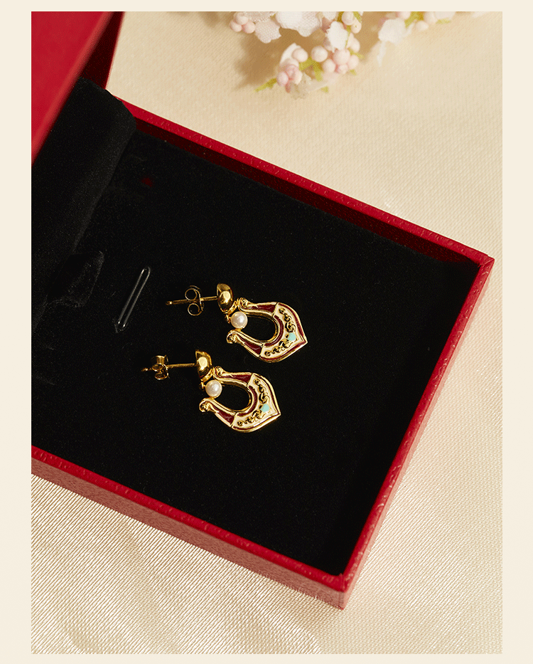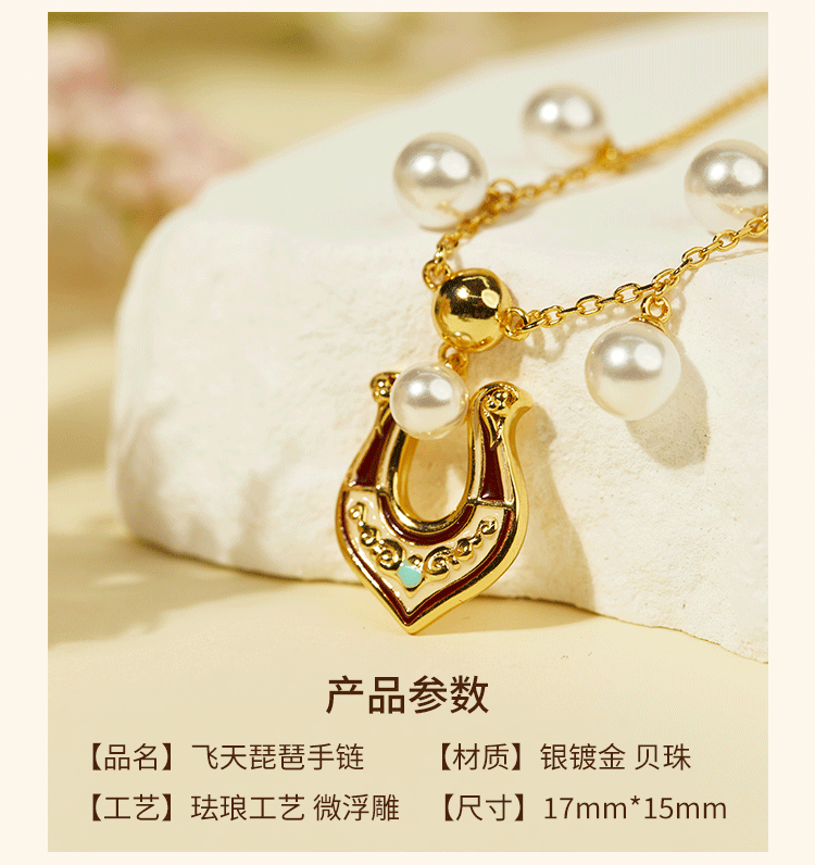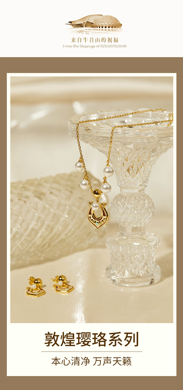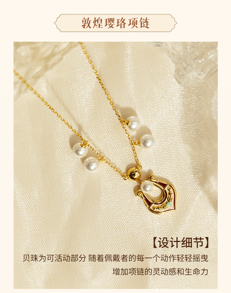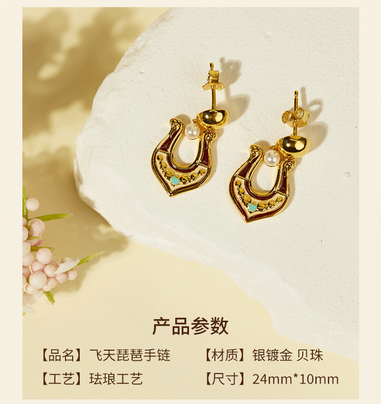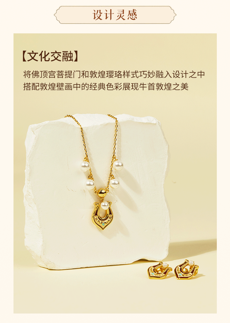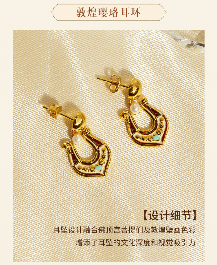 牛首山璎珞项链耳环微浮雕耳环敦煌元素银镀金珐琅工艺国潮风耳饰