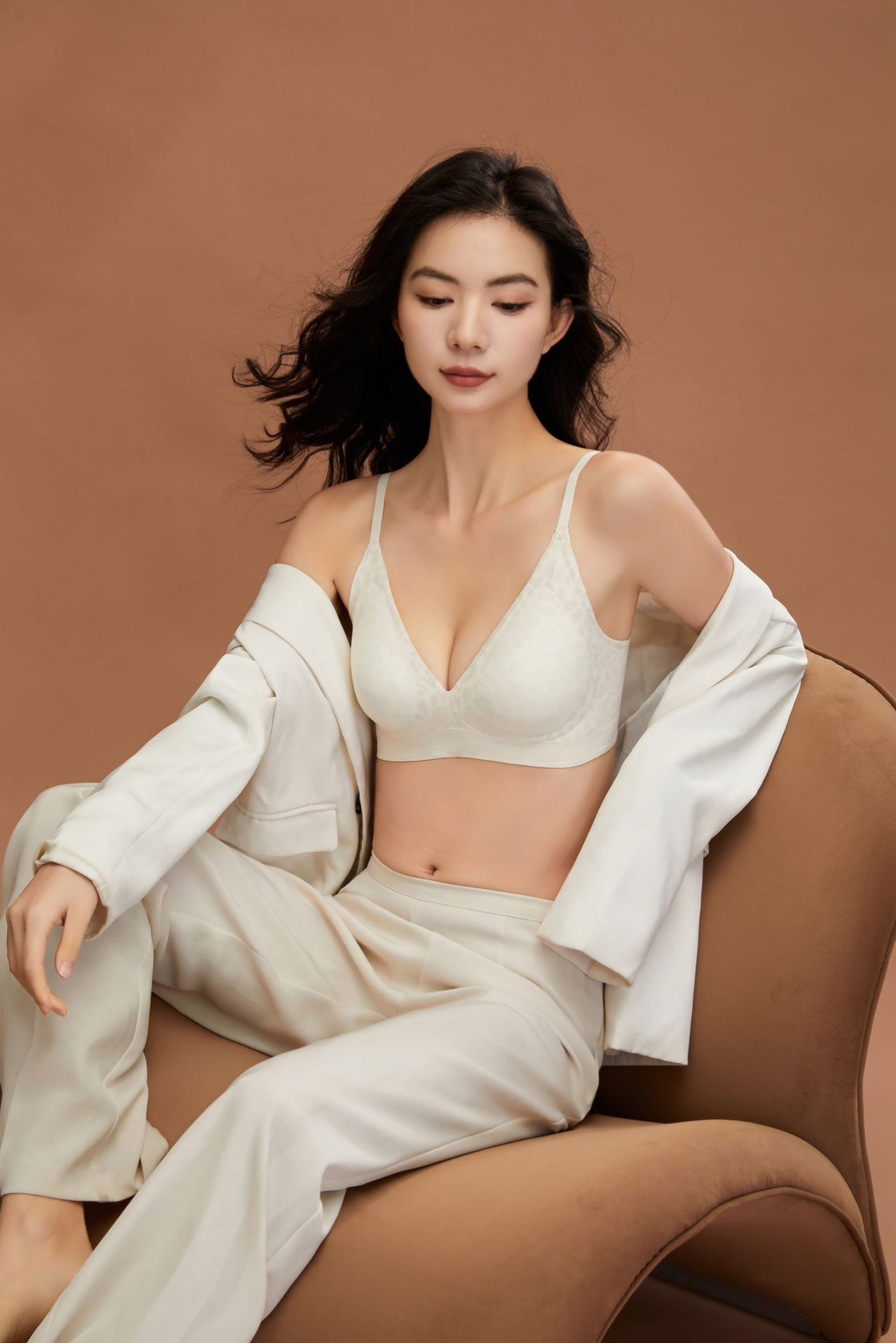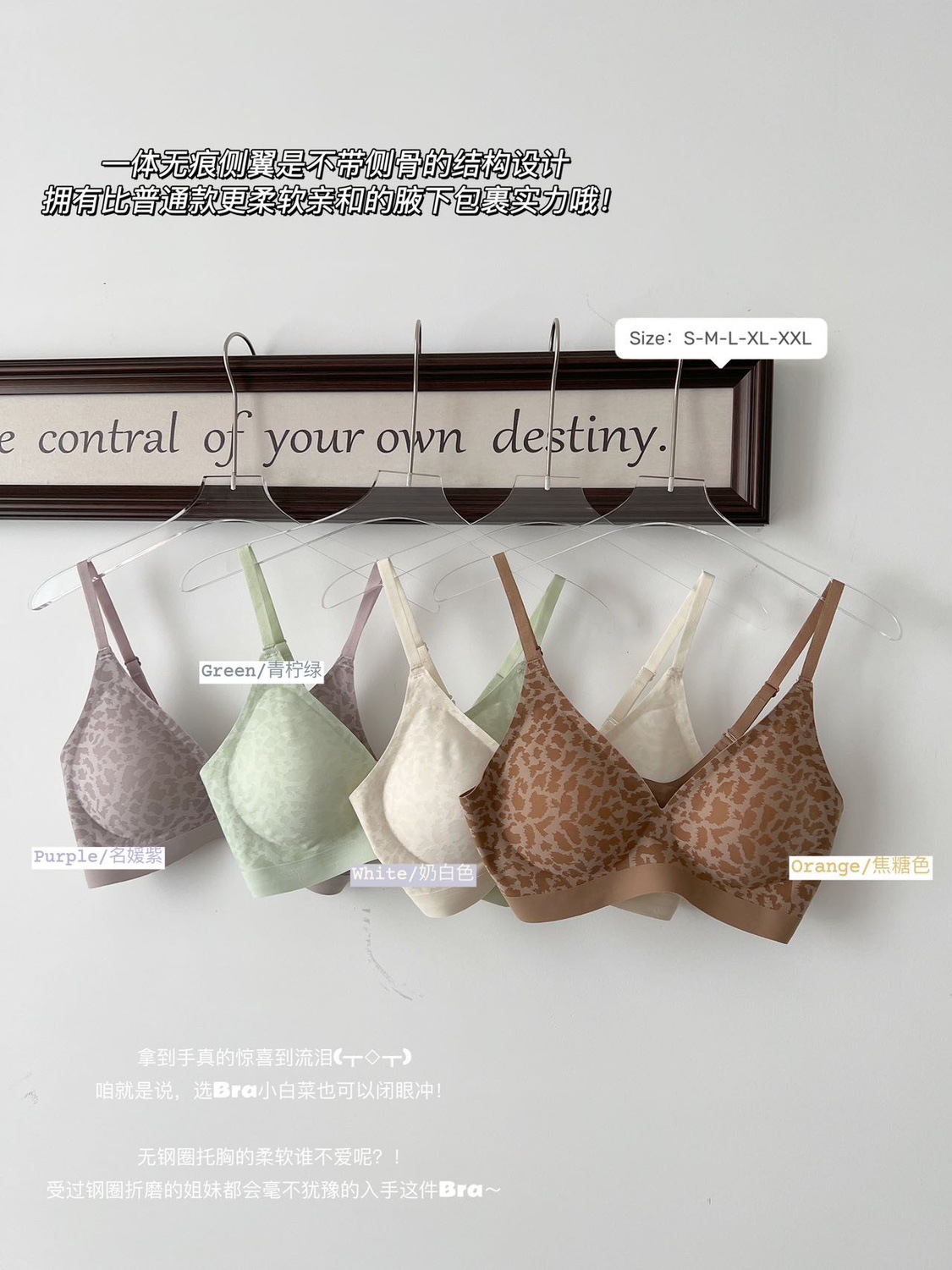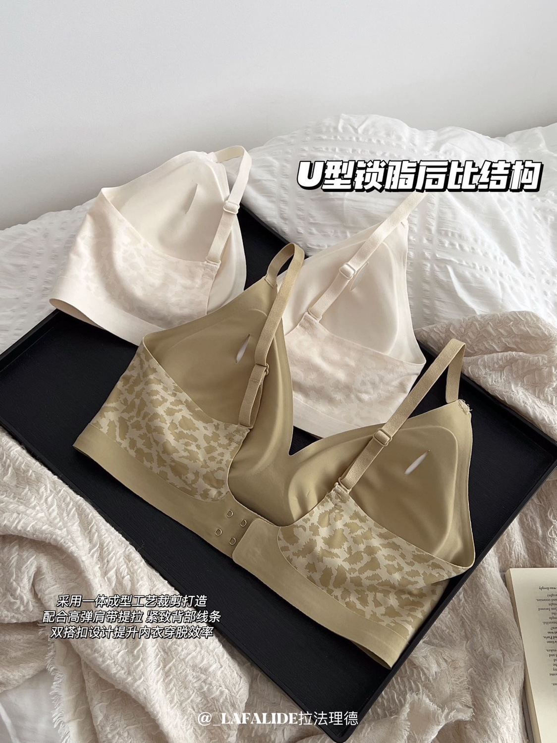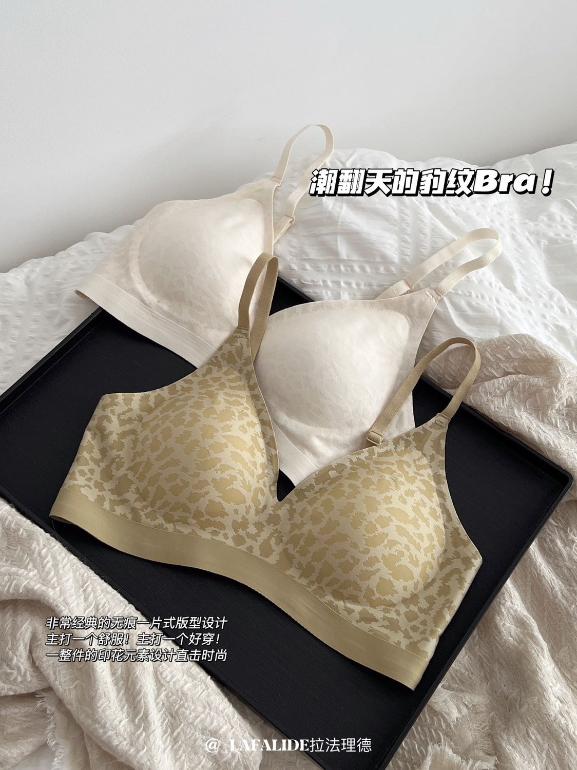 粉底液内衣 豹纹深V提拉 养护无痕内衣 固定杯小胸聚拢不空杯收副乳防下垂文胸