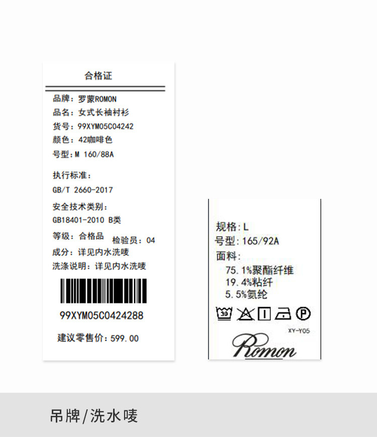 面料:75.1%聚酯纤维 19.4%粘纤 5.5%氨纶