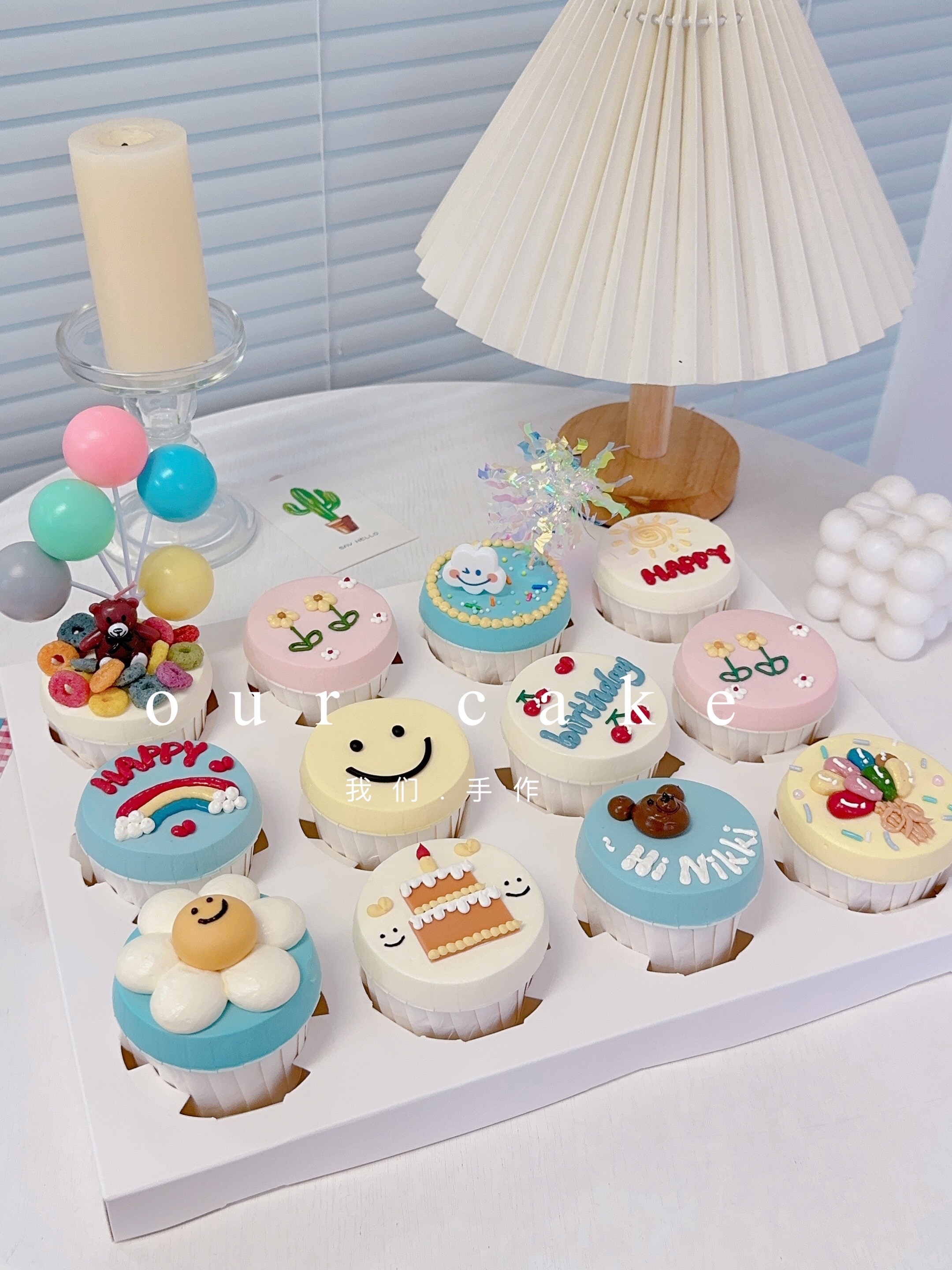 手绘杯子蛋糕(师傅随机做,不能挑图案哦!可告知师傅喜欢的色系)-无夹心内有卡仕达酱