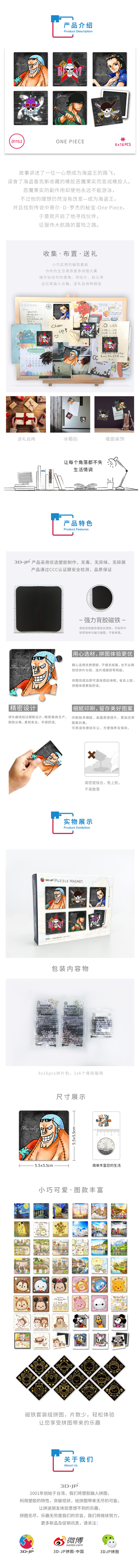 【折扣商品 不退不换】96片 磁铁拼图套装 塑料拼图 D1152 ONE PIECE-弗兰奇-佐罗-罗宾