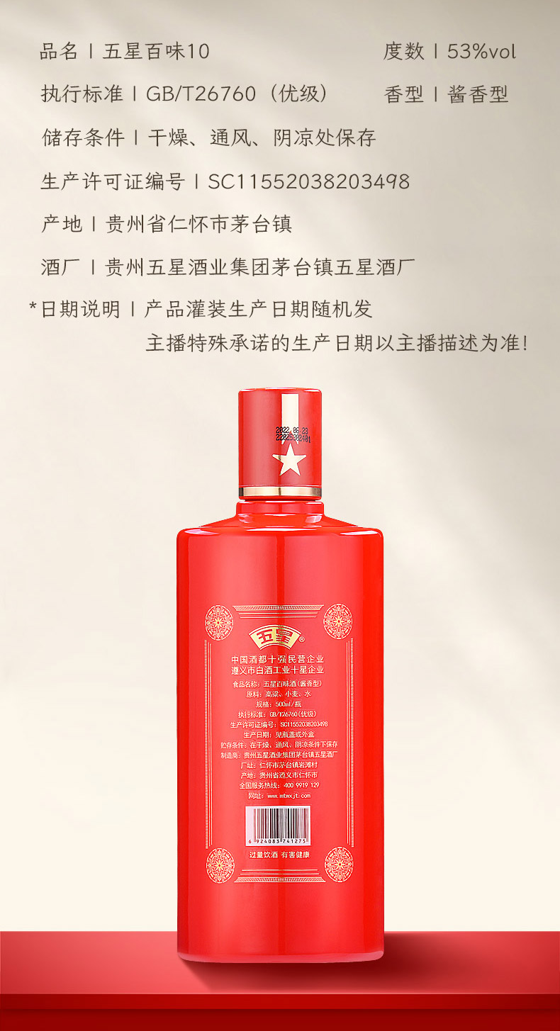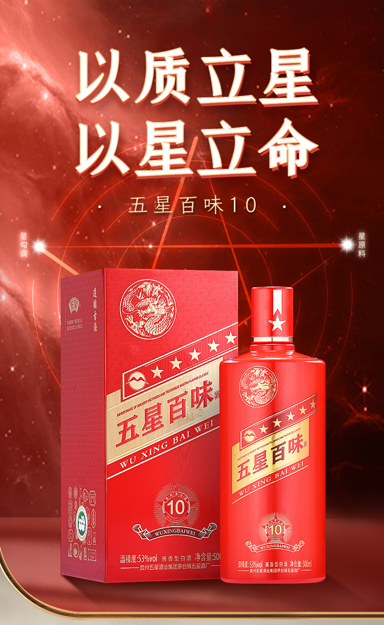 五星百味10礼盒装 500ml 53度酱香型白酒