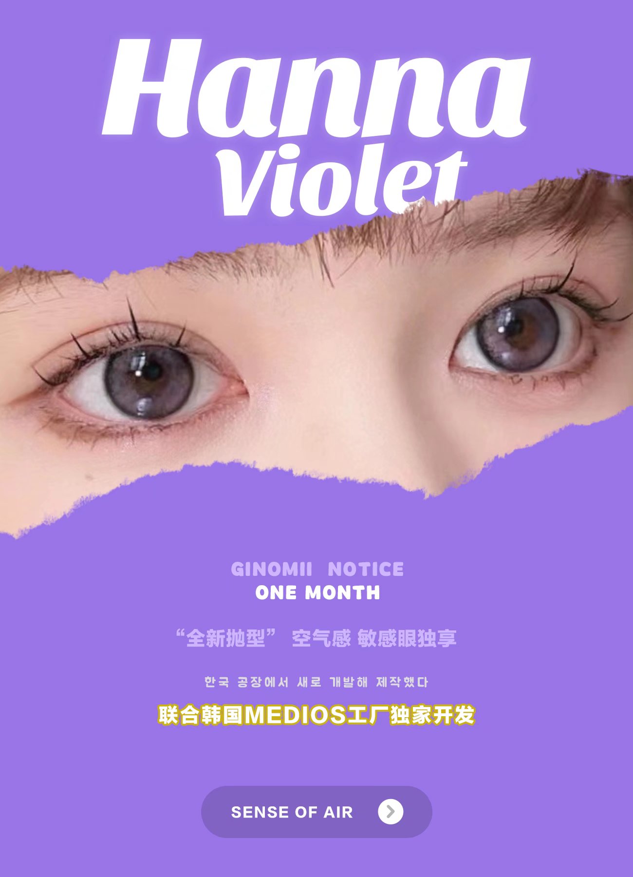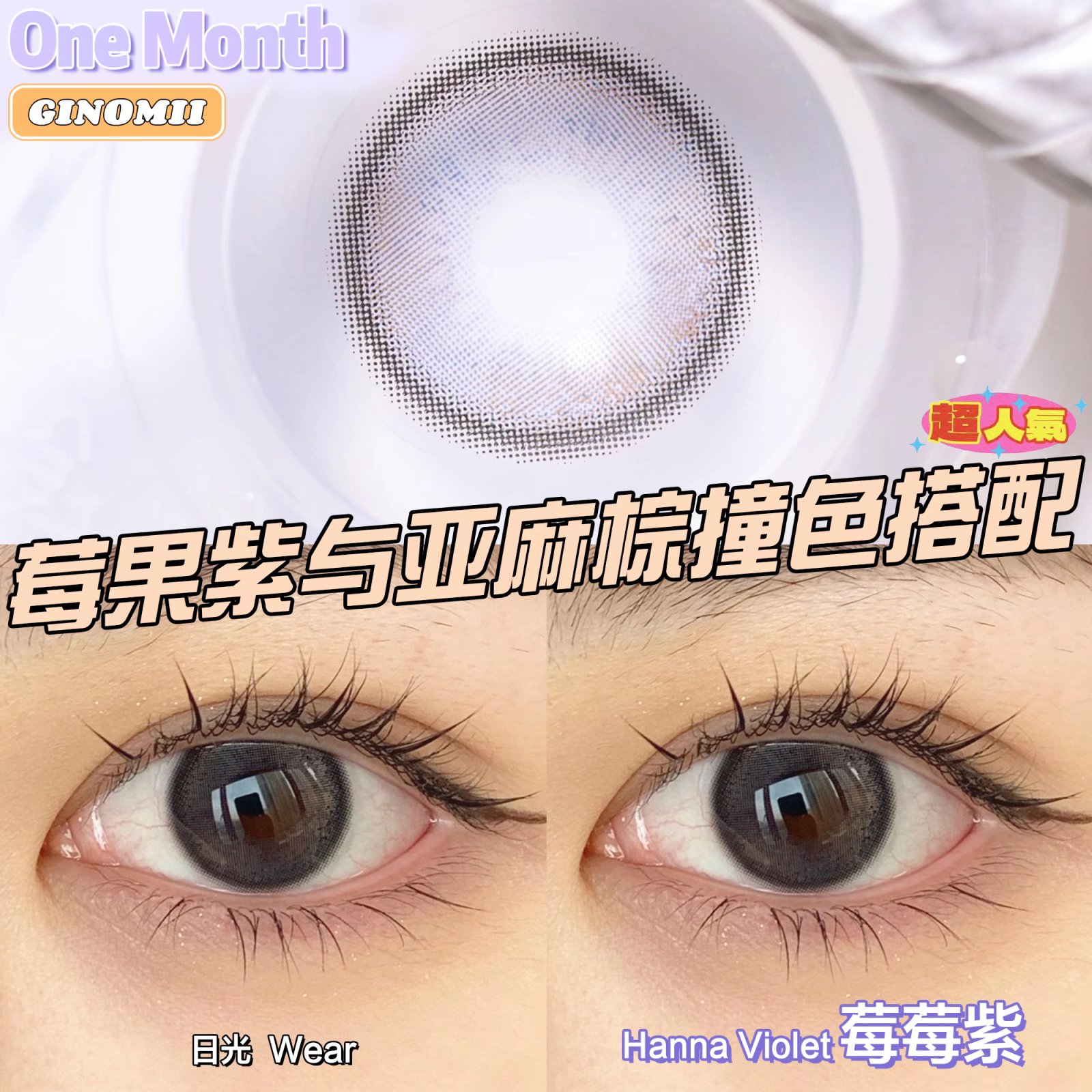 Ginomii 莓莓紫 月抛 2片 14.2mm 着色13.4mm 基弧8.6 含水38% 韩国进口