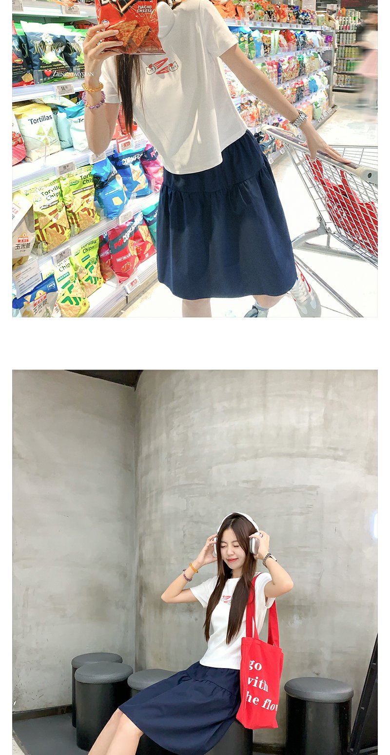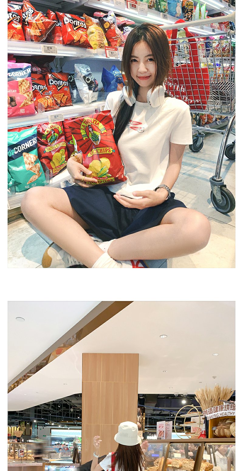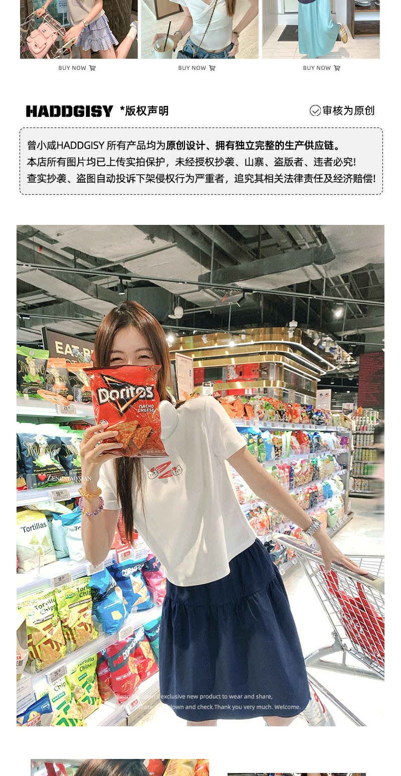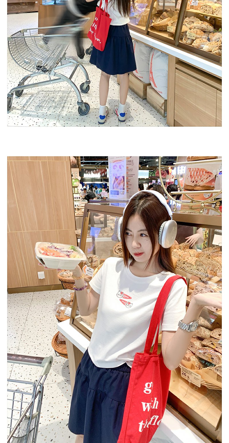 <曾小咸推荐>韩系可爱猫猫印花正肩短袖T恤