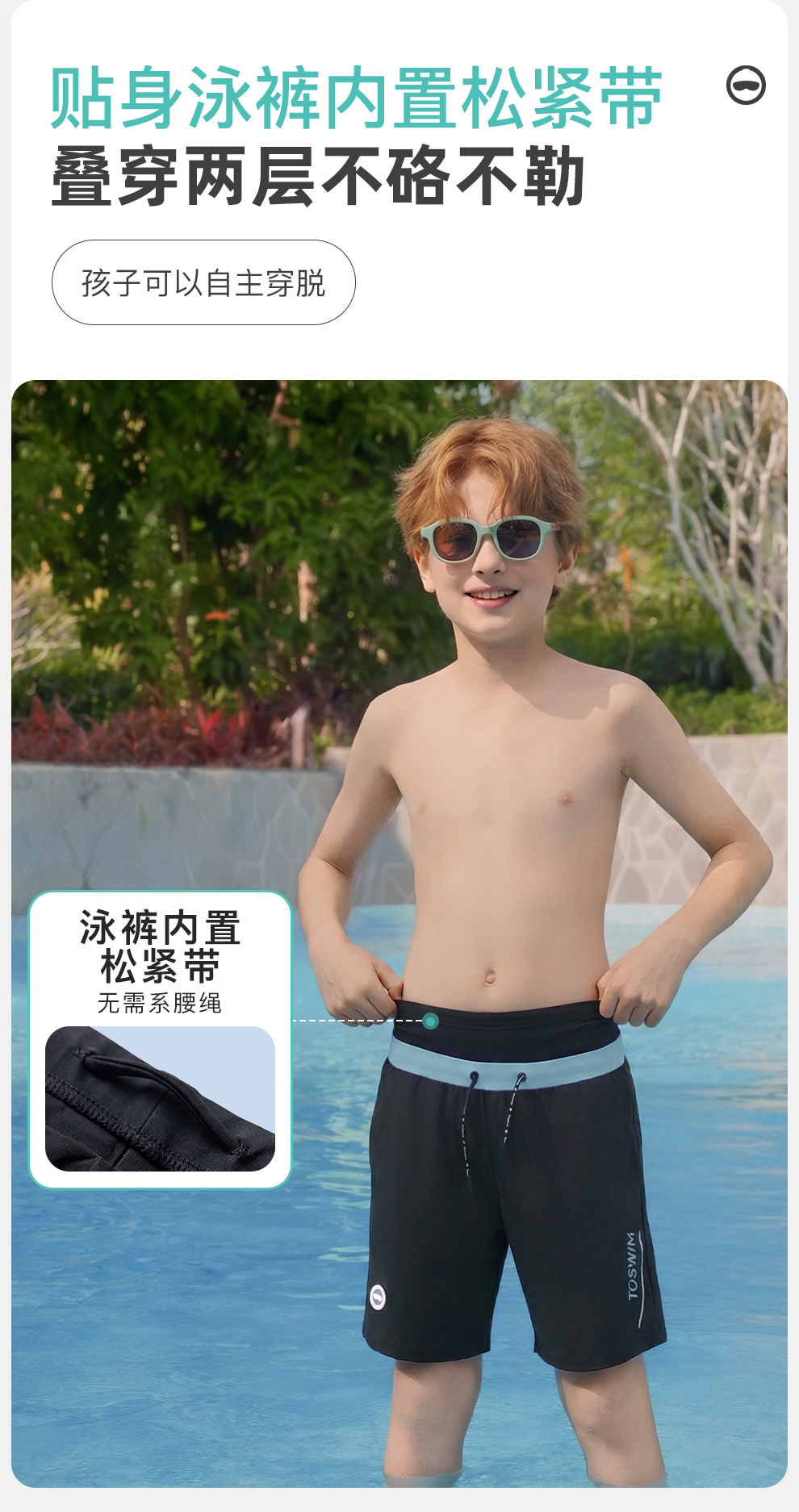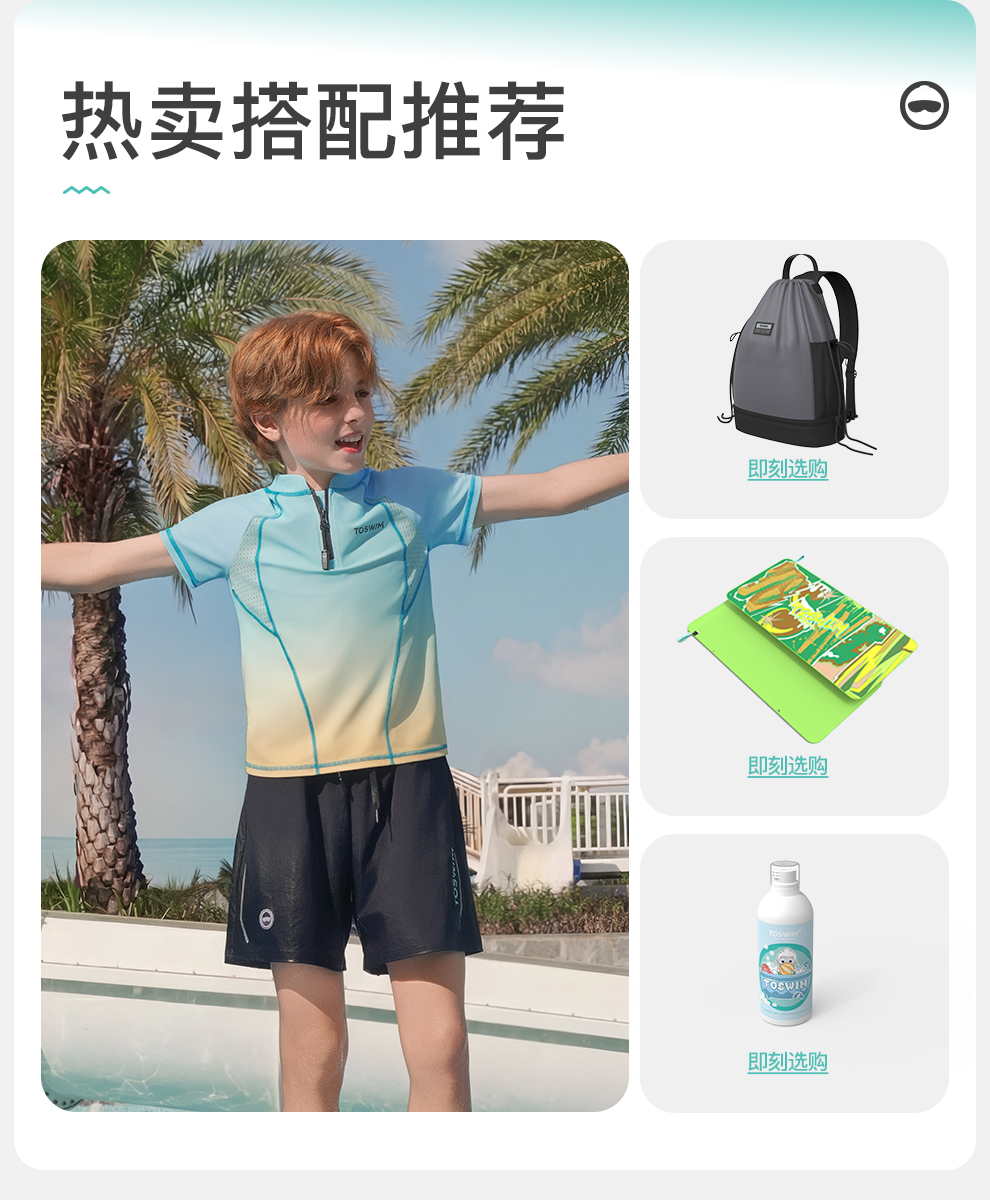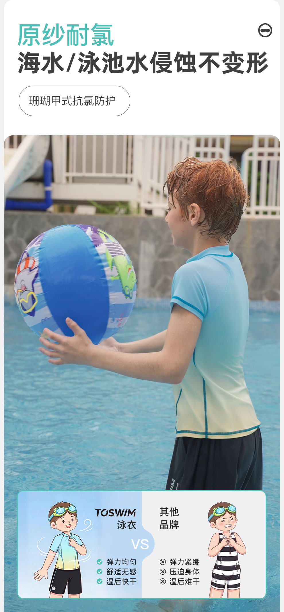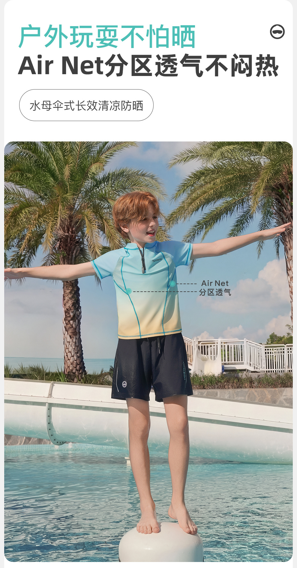 TOSWIM儿童泳装男童分体泳衣26年新款短袖短裤游泳玩水度假泳衣叠绿远山