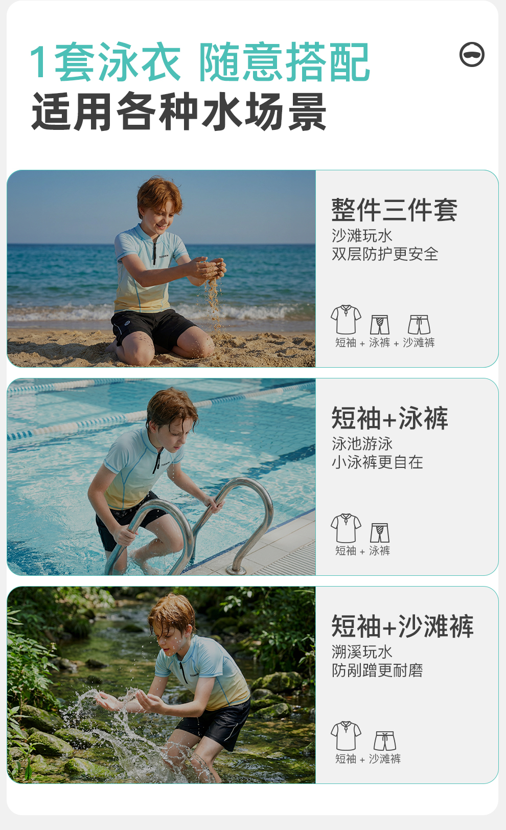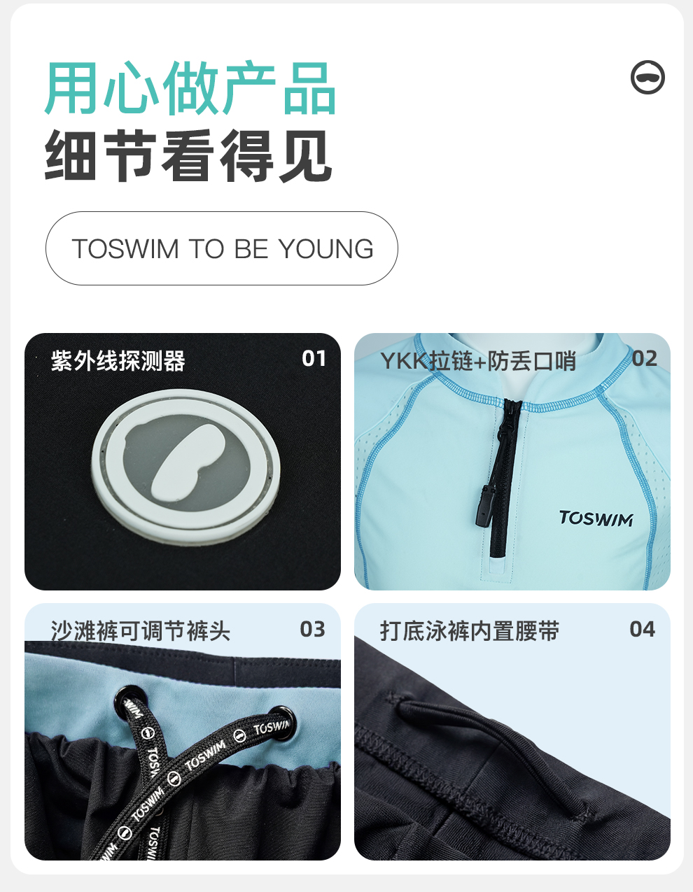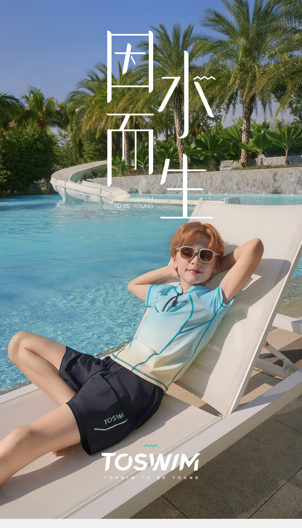 TOSWIM儿童泳装男童分体泳衣26年新款短袖短裤游泳玩水度假泳衣叠绿远山