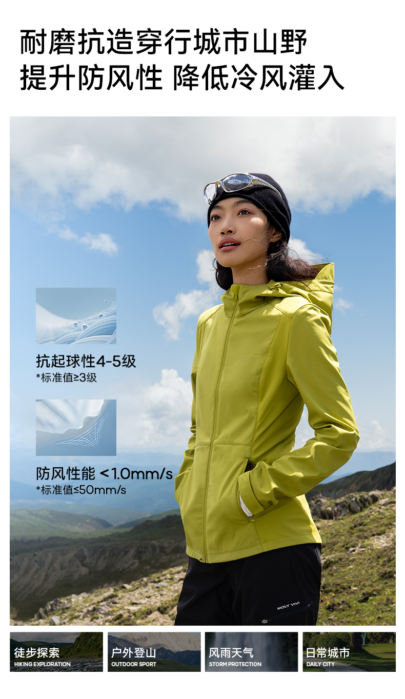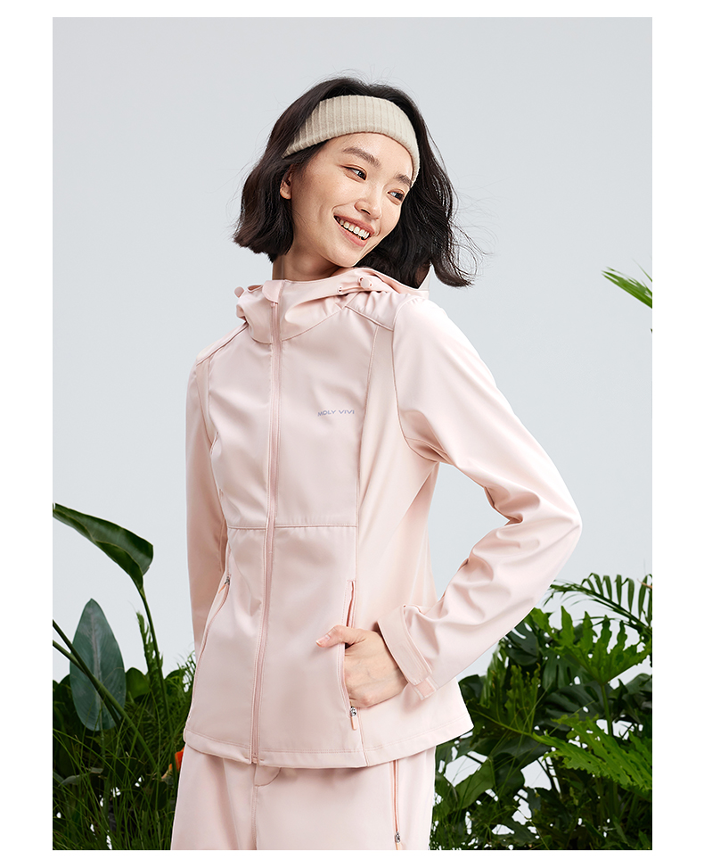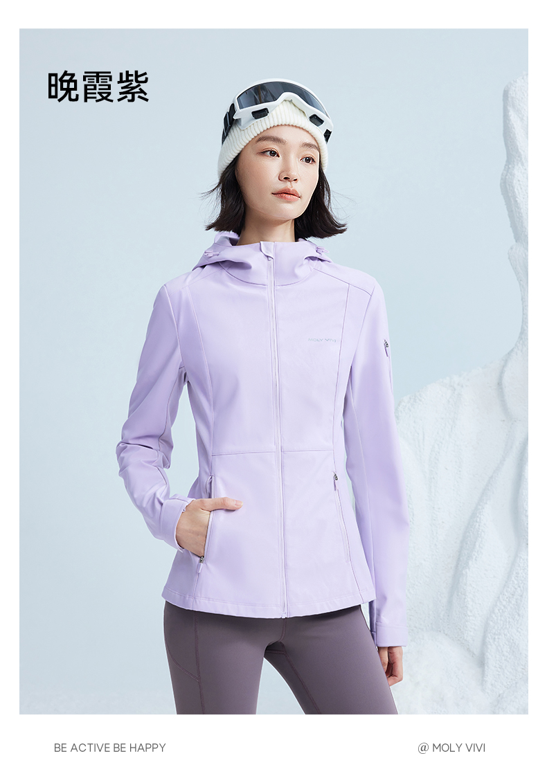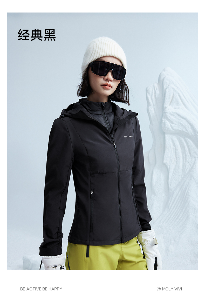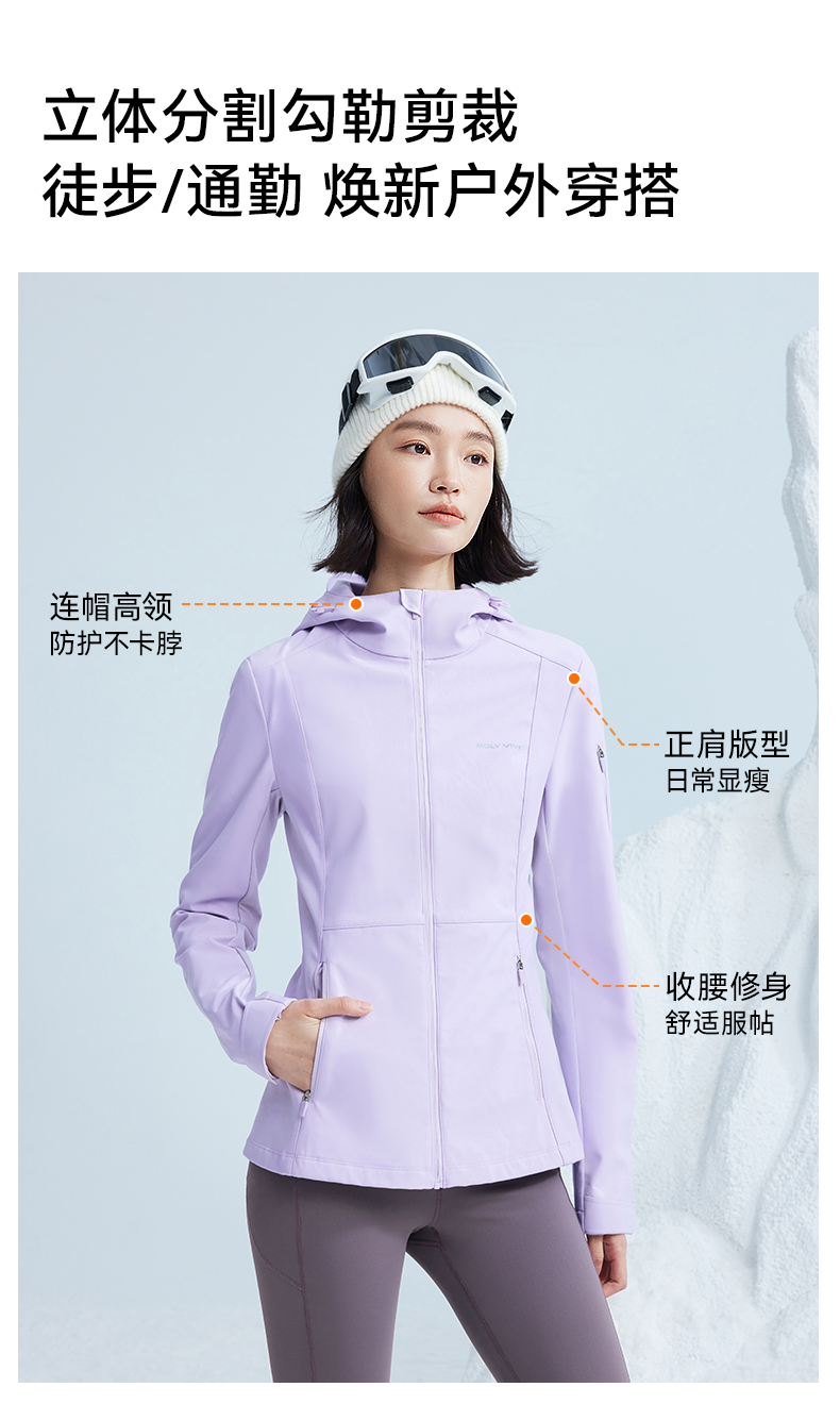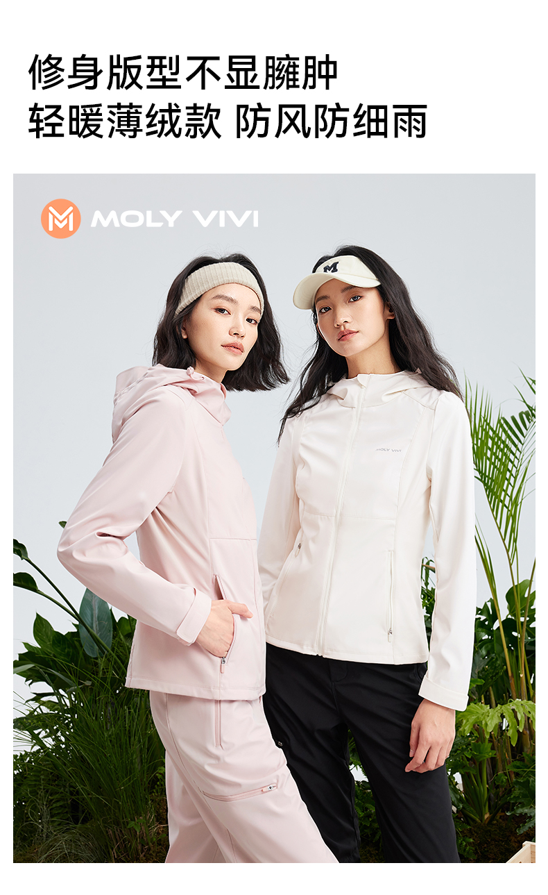 MOLYVIVI魔力薇薇2024冬季新款防水软壳外套女款修身三防显瘦大帽檐