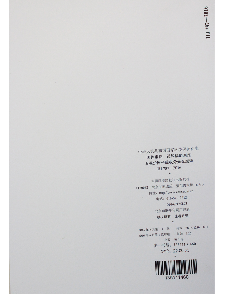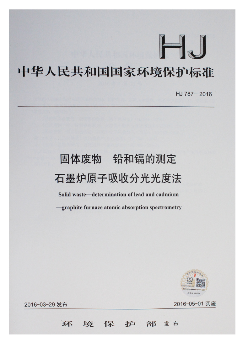 HJ 787-2016 固体废物 铅和镉测定 石墨炉原子吸收分光光度法 国家标准 GB 环境保护 135111460