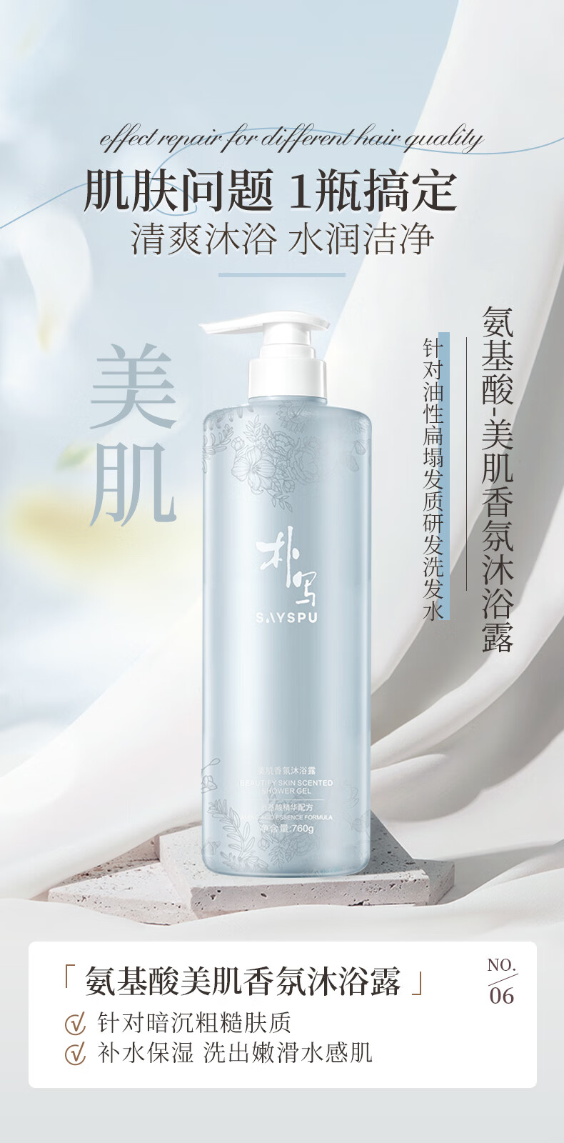 朴写SAYSPU洗发水护发素沐浴乳套装持久去屑清洁清爽柔润男女通用