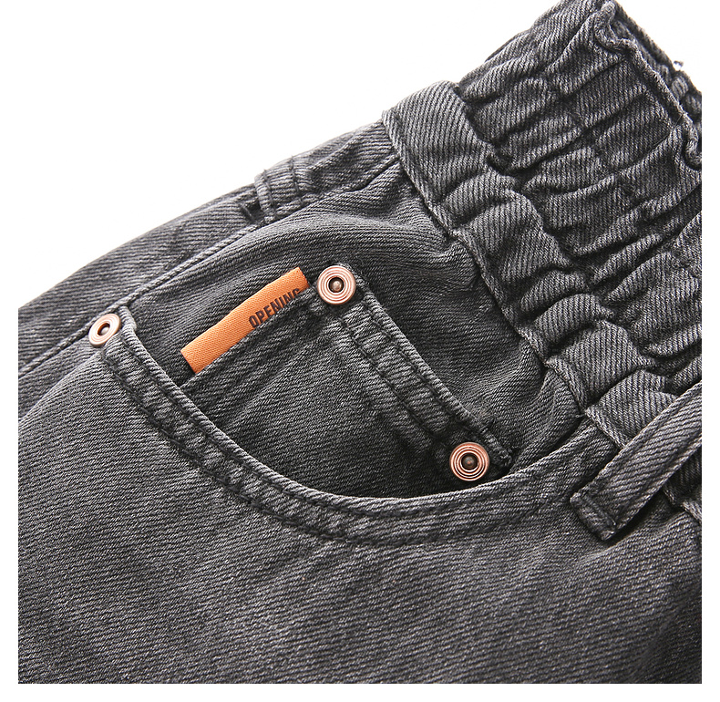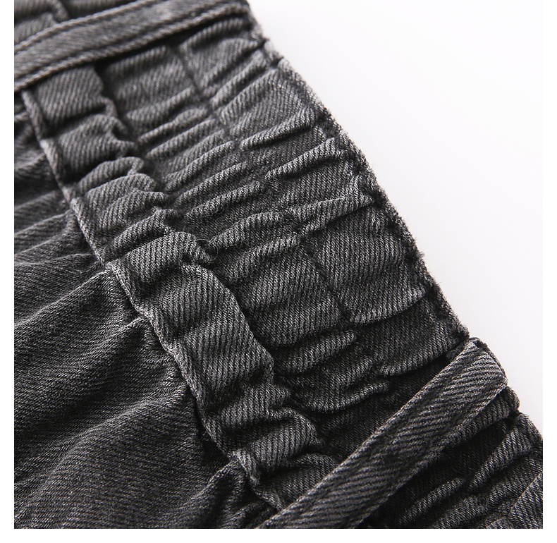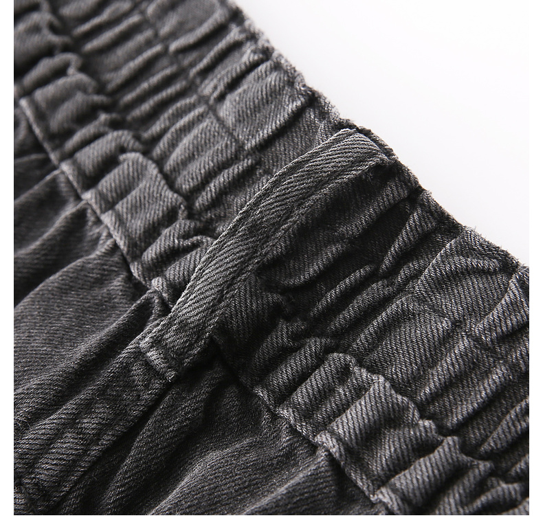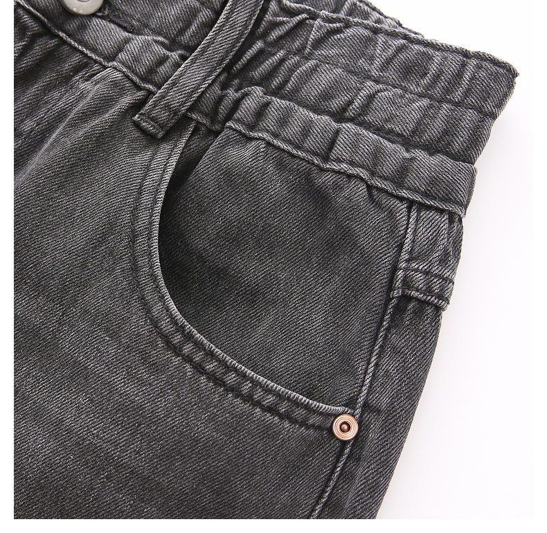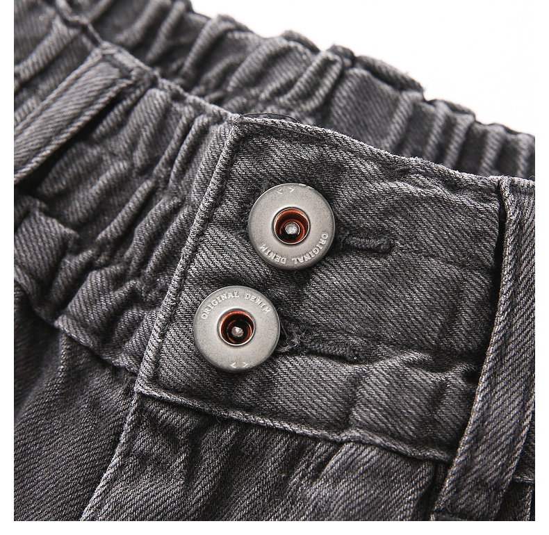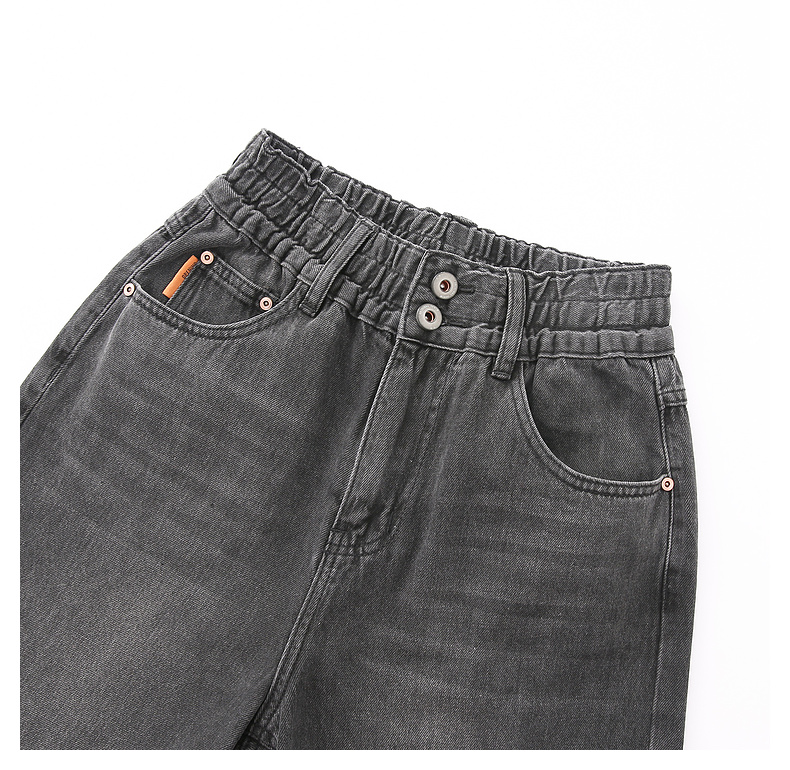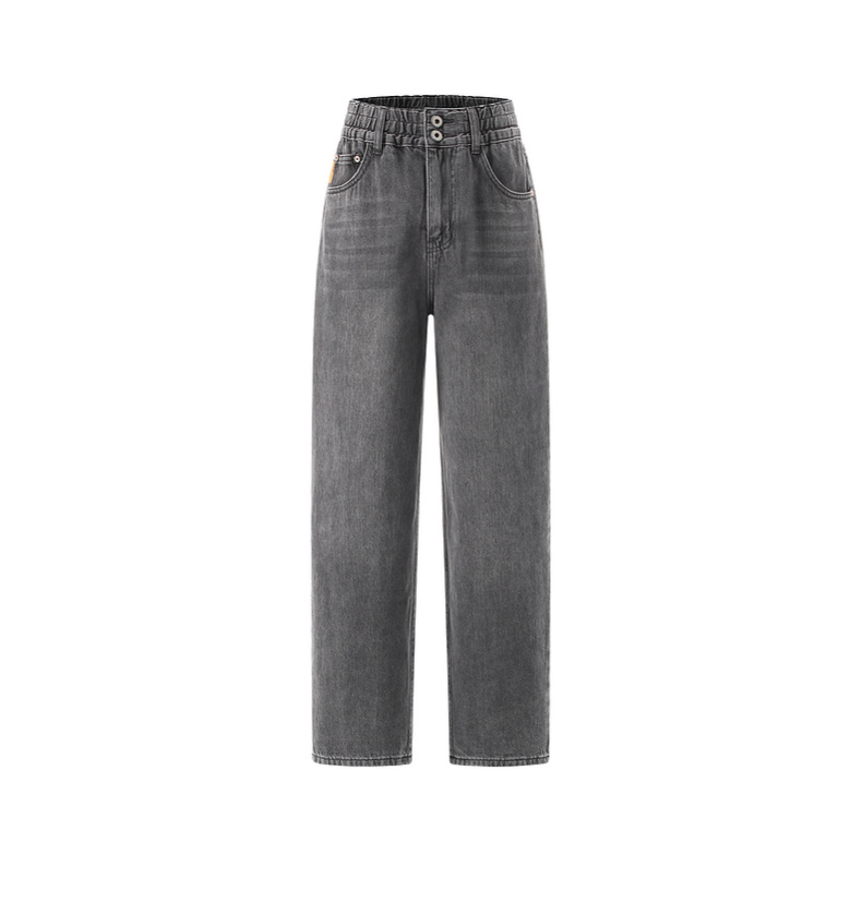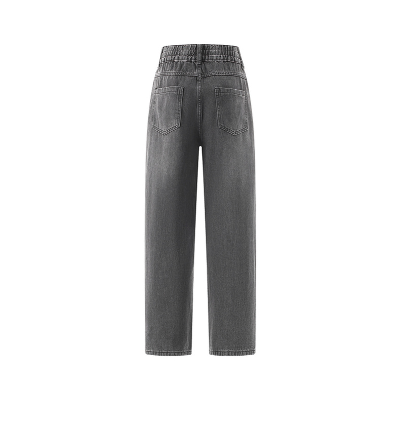 拉夏贝尔/La Chapelle秋季新款复古美式高级灰哈伦裤高腰松紧宽松牛仔裤