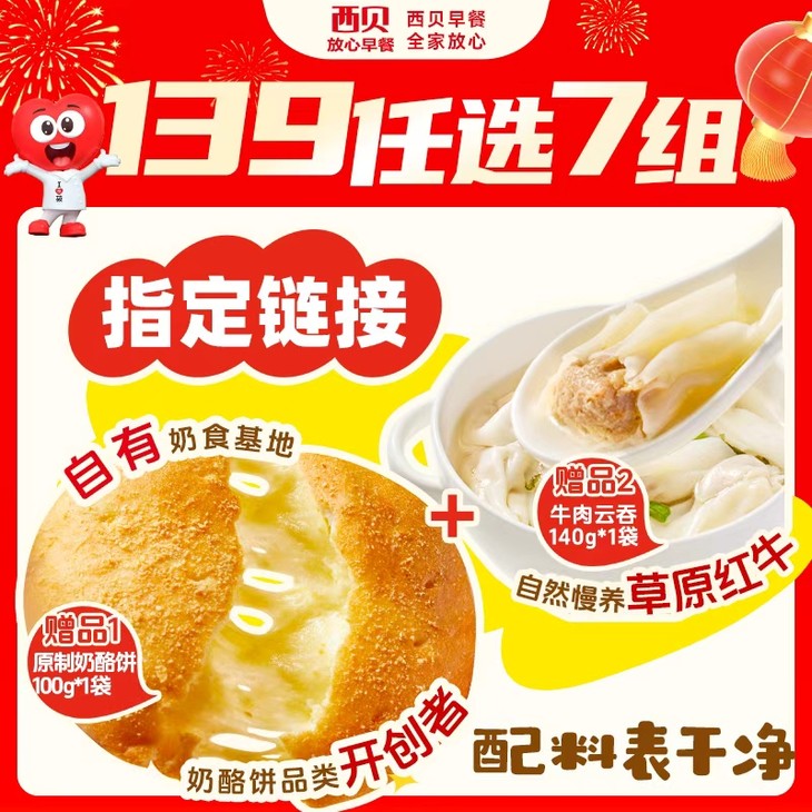 【99元任选10件,139元任选14件 不满10件不发】西贝经典杂粮早餐任选系列有机莜面鱼鱼酥皮馅饼等快手早餐速食