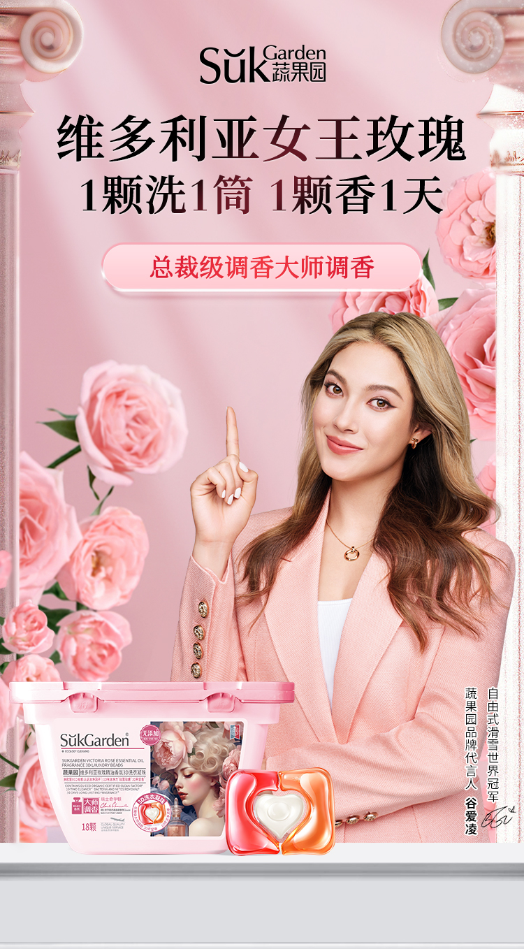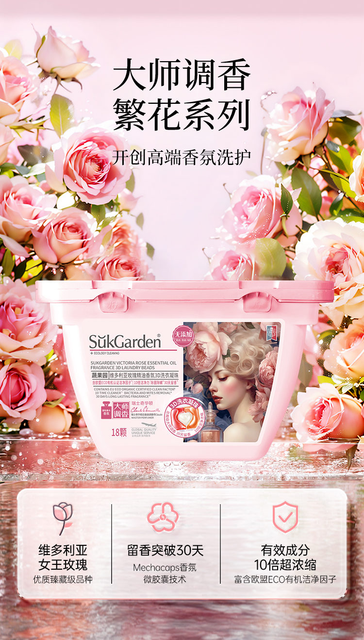 【日化洗护】蔬果园维多利亚玫瑰精油香氛3D洗衣凝珠-10g*50颗QSH