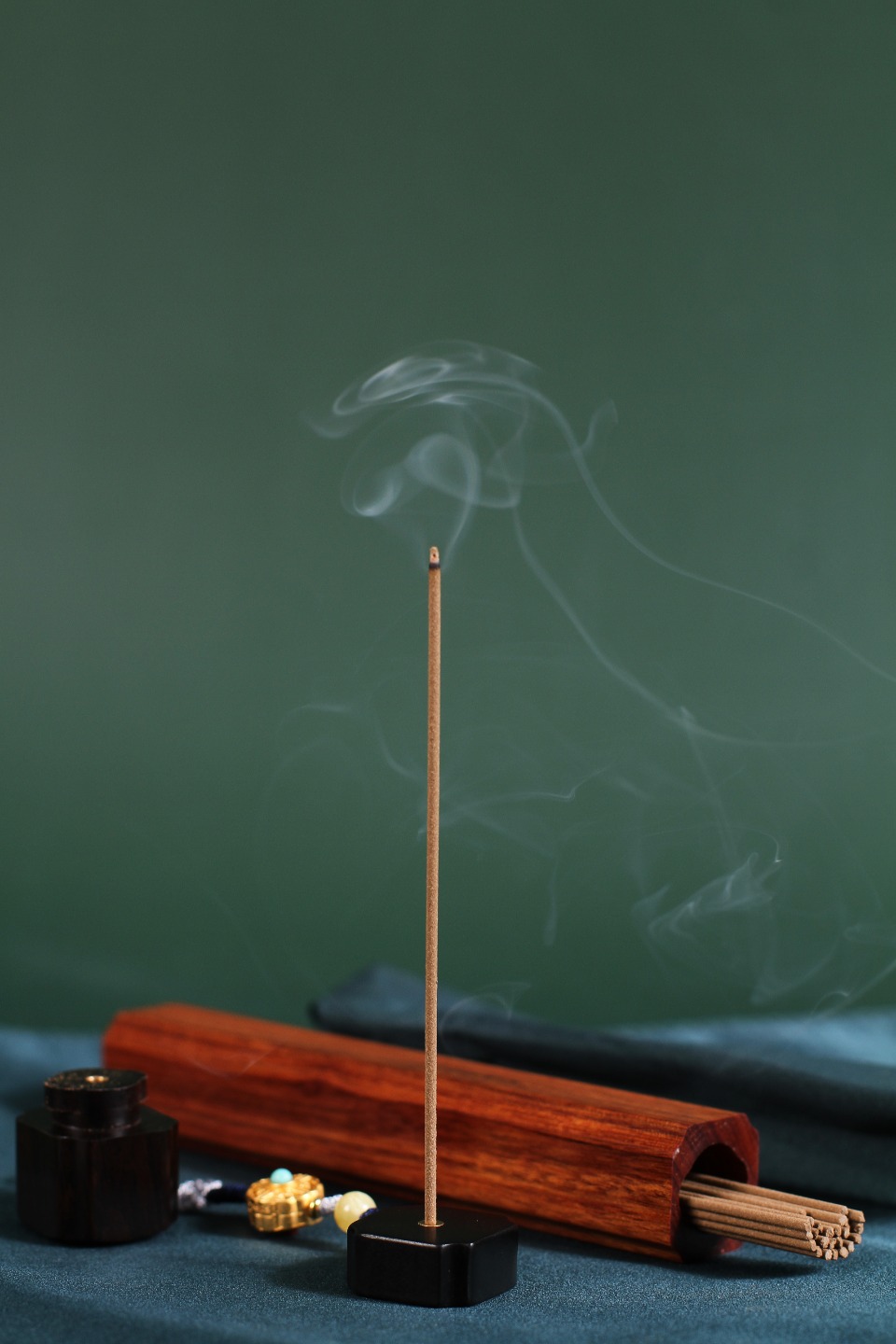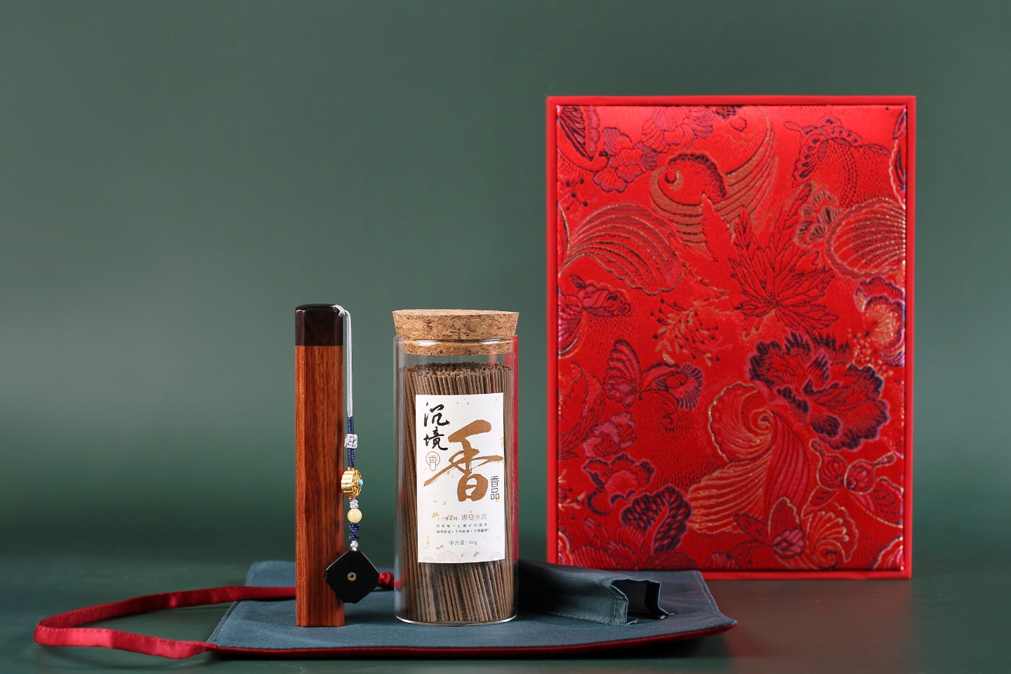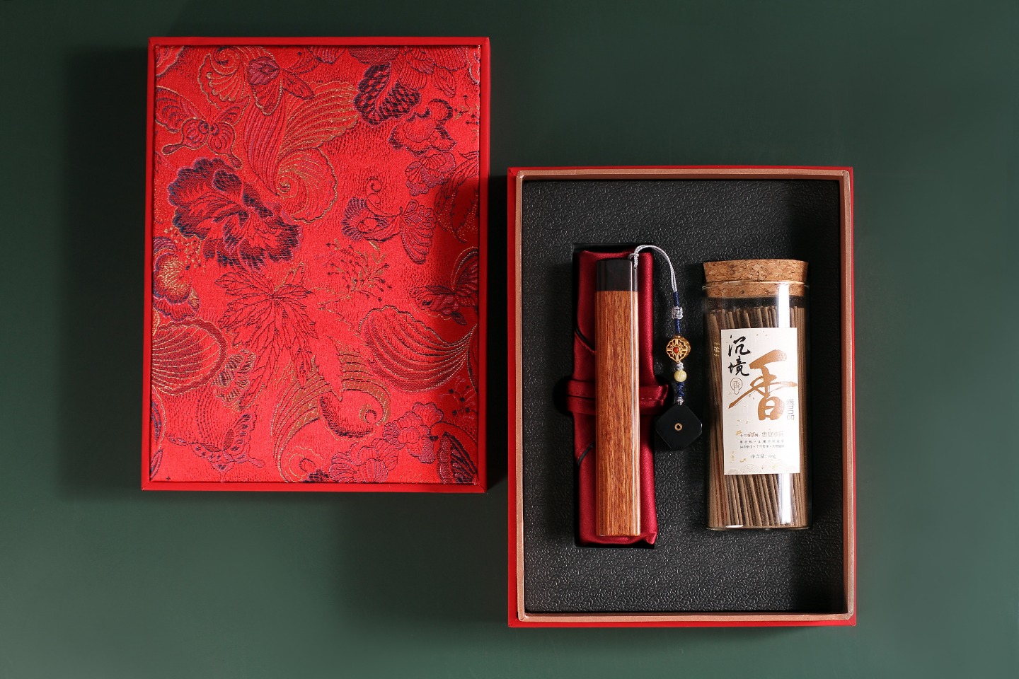 搭配:非洲酸枝窗菱香筒/紫光檀香插/24k祥云背云南红+绿松/蜜蜡+惠安沉香