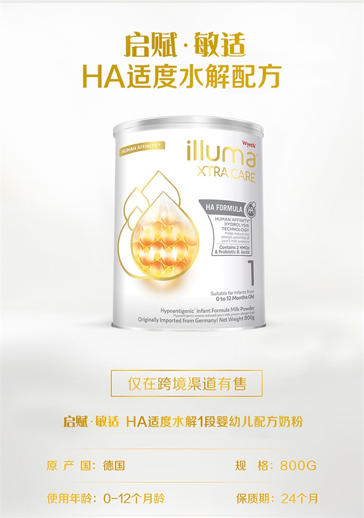 [大罐1段]惠氏启赋Wyeth敏适HA适度水解低敏婴幼儿奶粉1段(0-12个月)800g